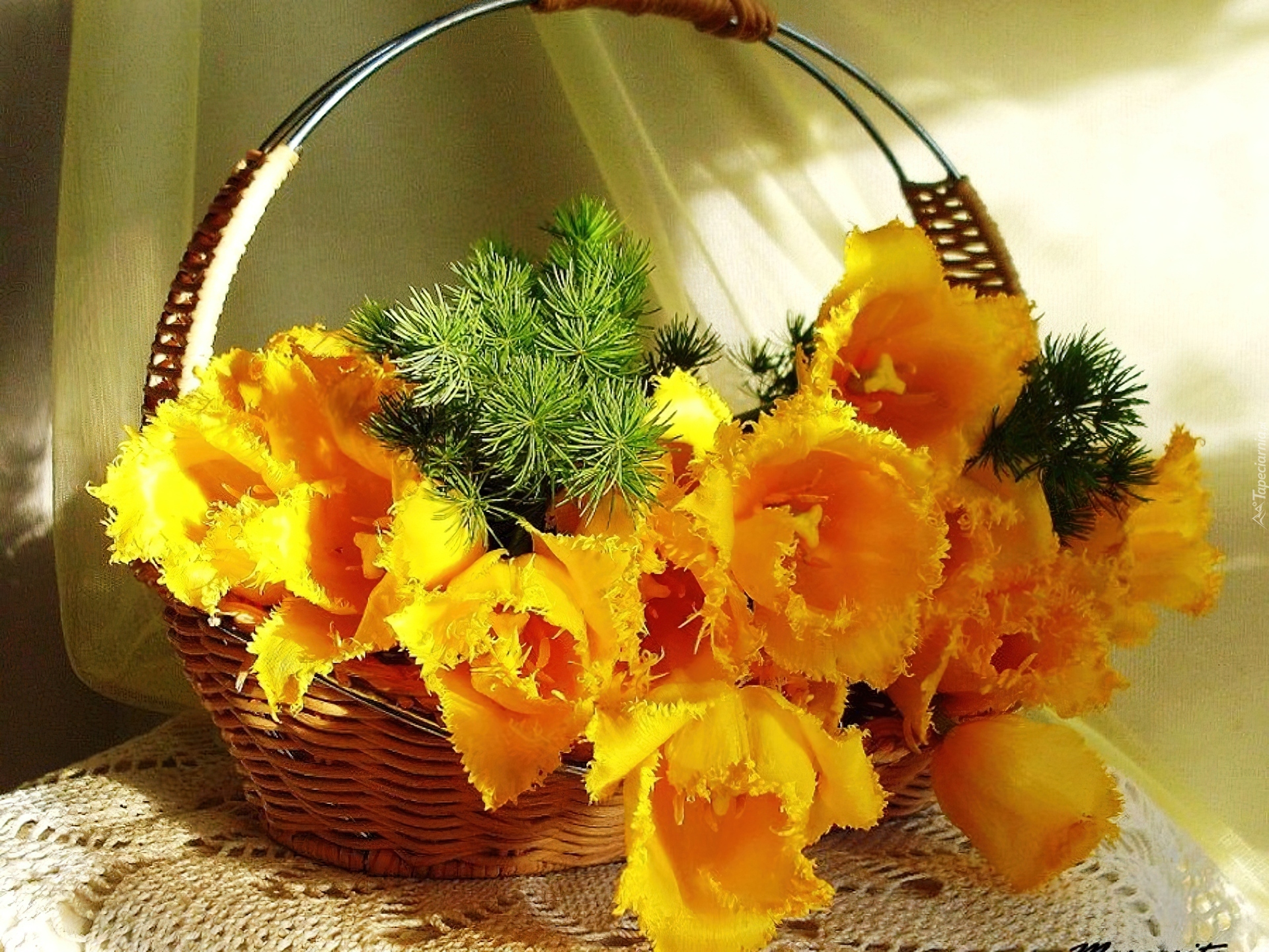 Edytor tapety: Koszyk, Żółte, Tulipany