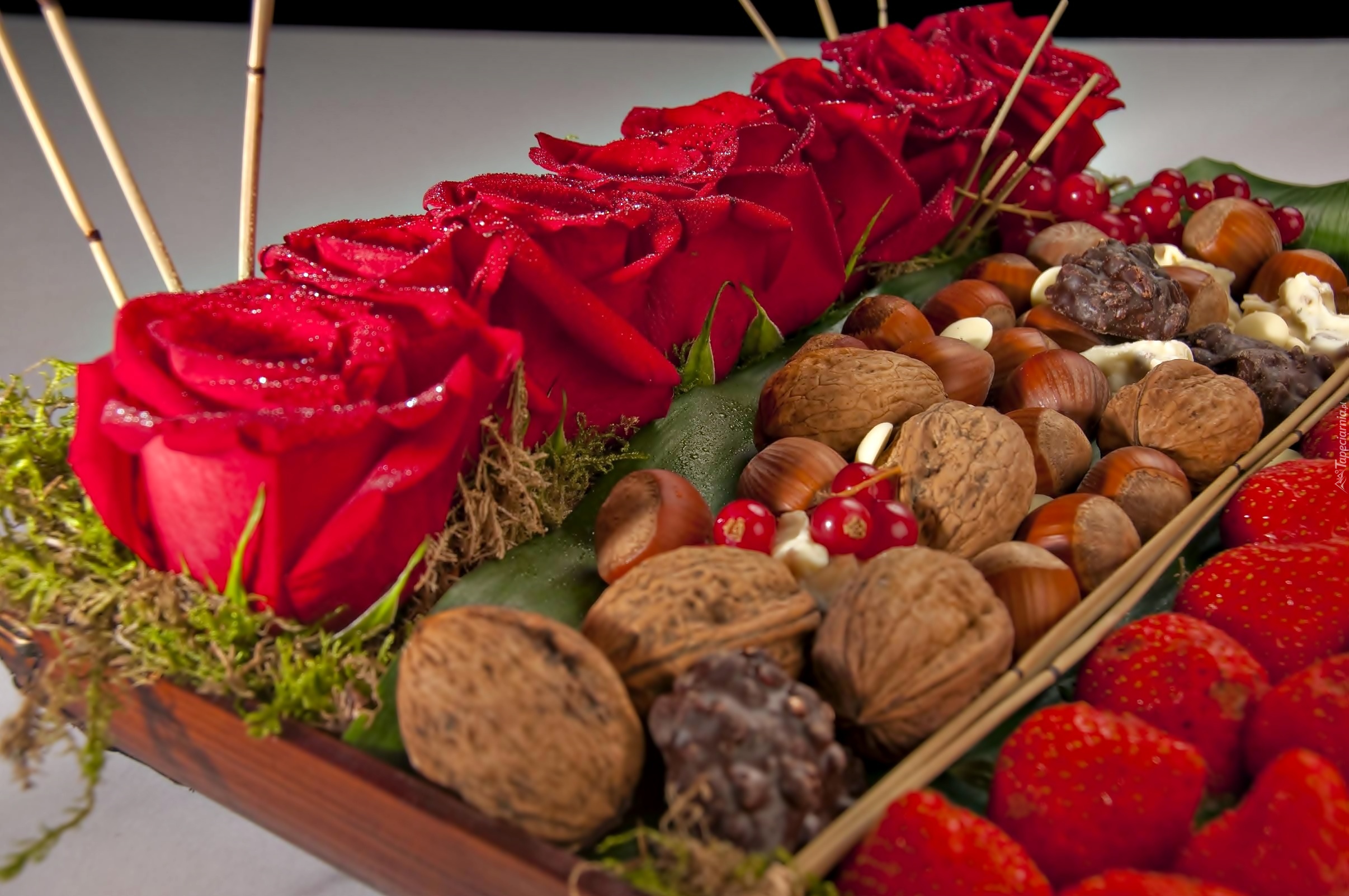 Edytor tapety: Róże, Orzechy, Truskawki