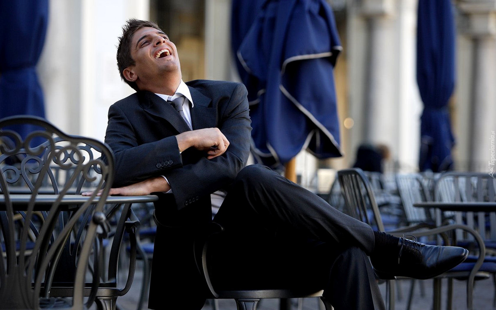 Edytor tapety: Mężczyzna, Kawiarenka, Emocje, Śmiech