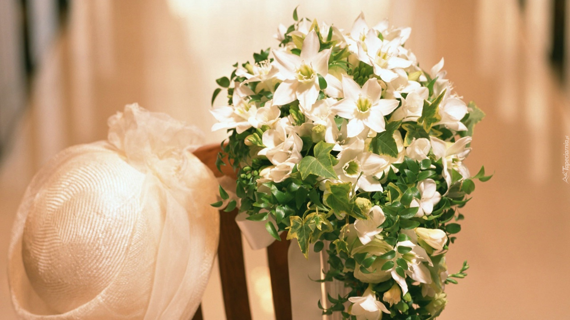 Edytor tapety: Ślubny, Bukiet, Krzesło, Kapelusz