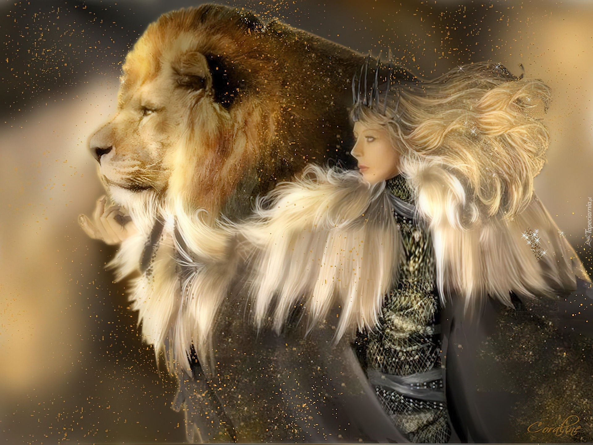 Edytor tapety: Lew, Grzywa, Kobieta