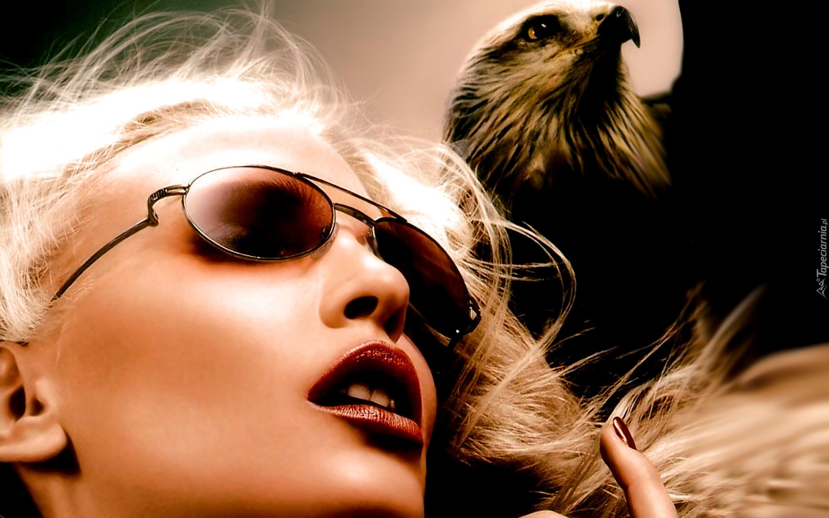 Edytor tapety: Kobieta, Twarz, Okulary, Orzeł