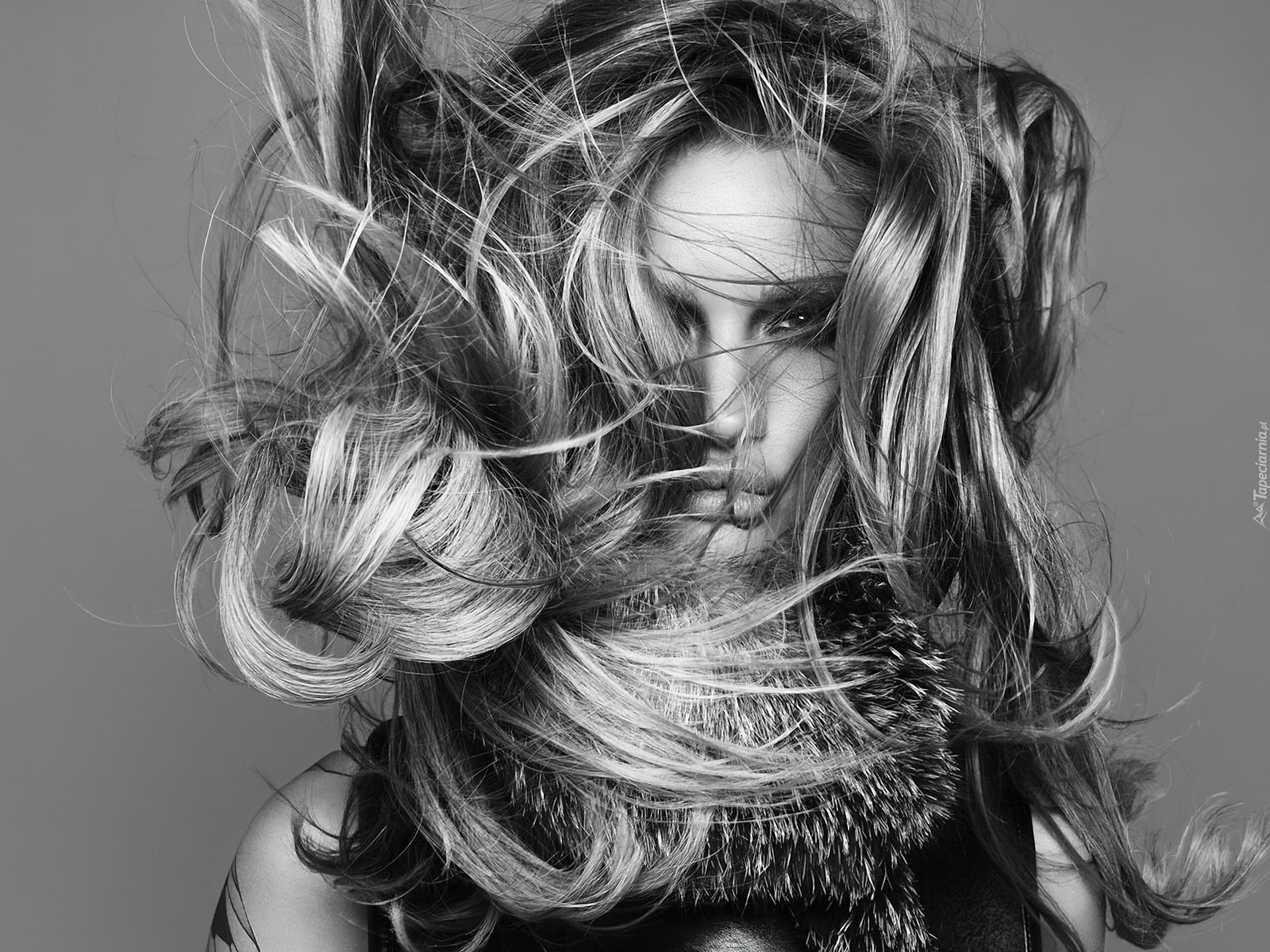 Edytor tapety: Kobieta, Rozwiane, Włosy, Czarno-Białe