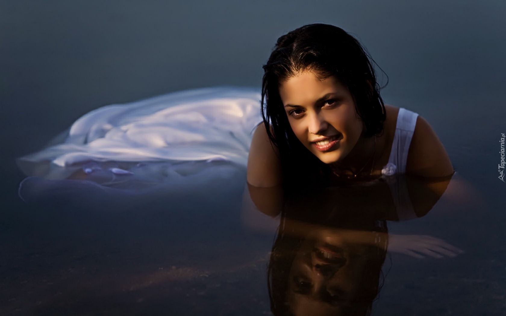 Edytor tapety: Kobieta, Woda, Biała, Sukienka