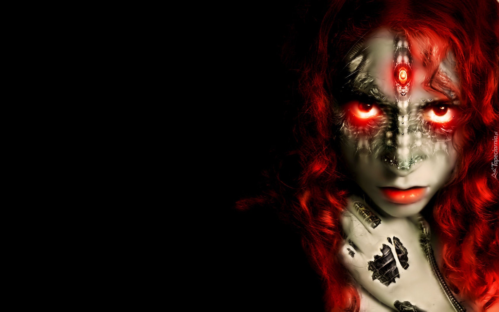 Edytor tapety: Kobieta, Fantasy, Czerwone, Dodatki