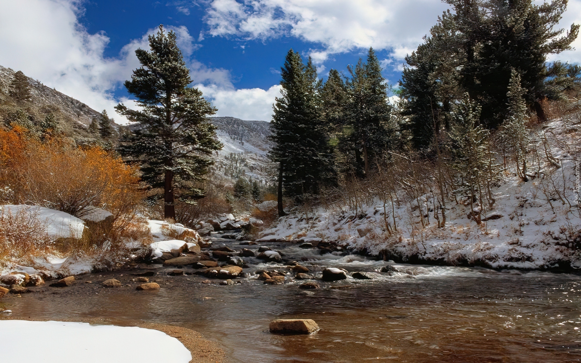 Edytor tapety: Rzeka, Drzewa, Śnieg