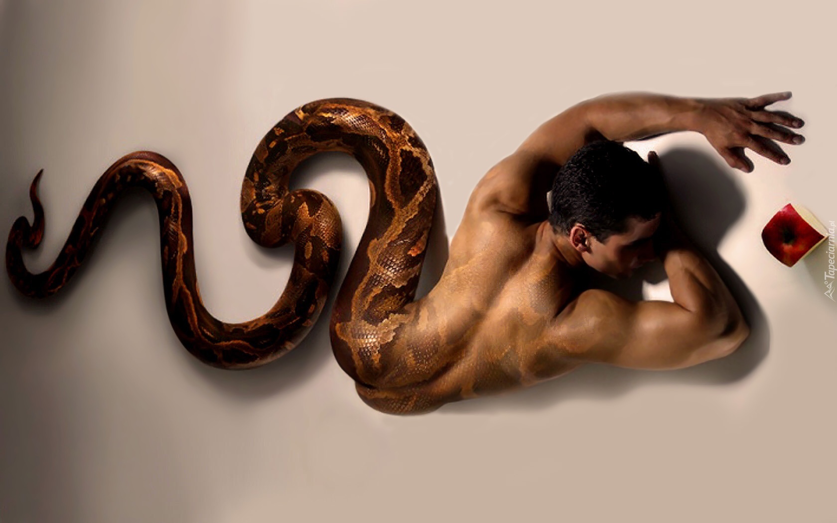 Edytor tapety: Mężczyzna, Wąż, Jabłko, Fantasy