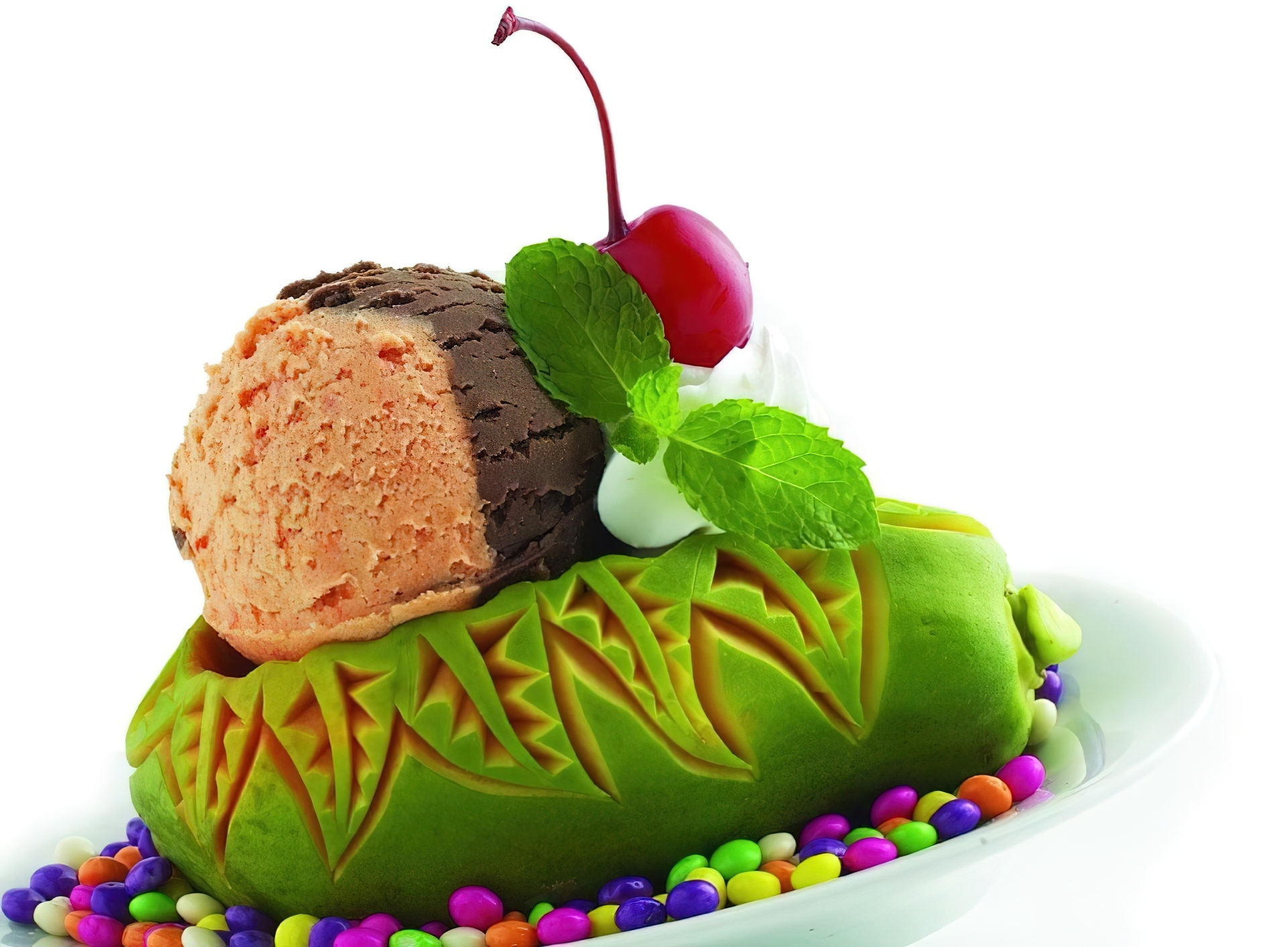 Edytor tapety: Papaja, Lody, Wisienka