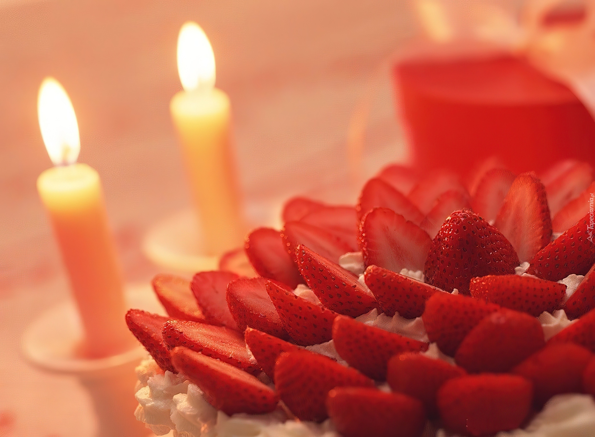 Edytor tapety: Truskawki, Bita, Śmietana, Świece
