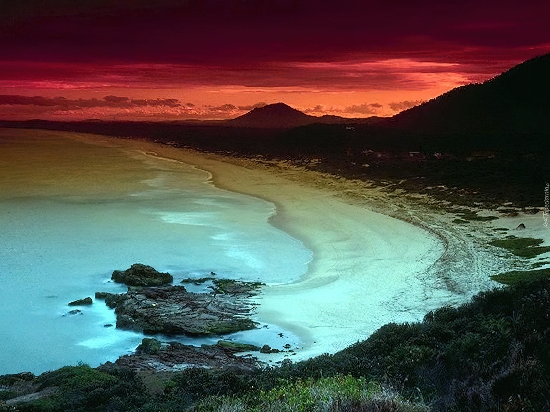 Edytor tapety: Zachód Słońca, Góra, Plaża