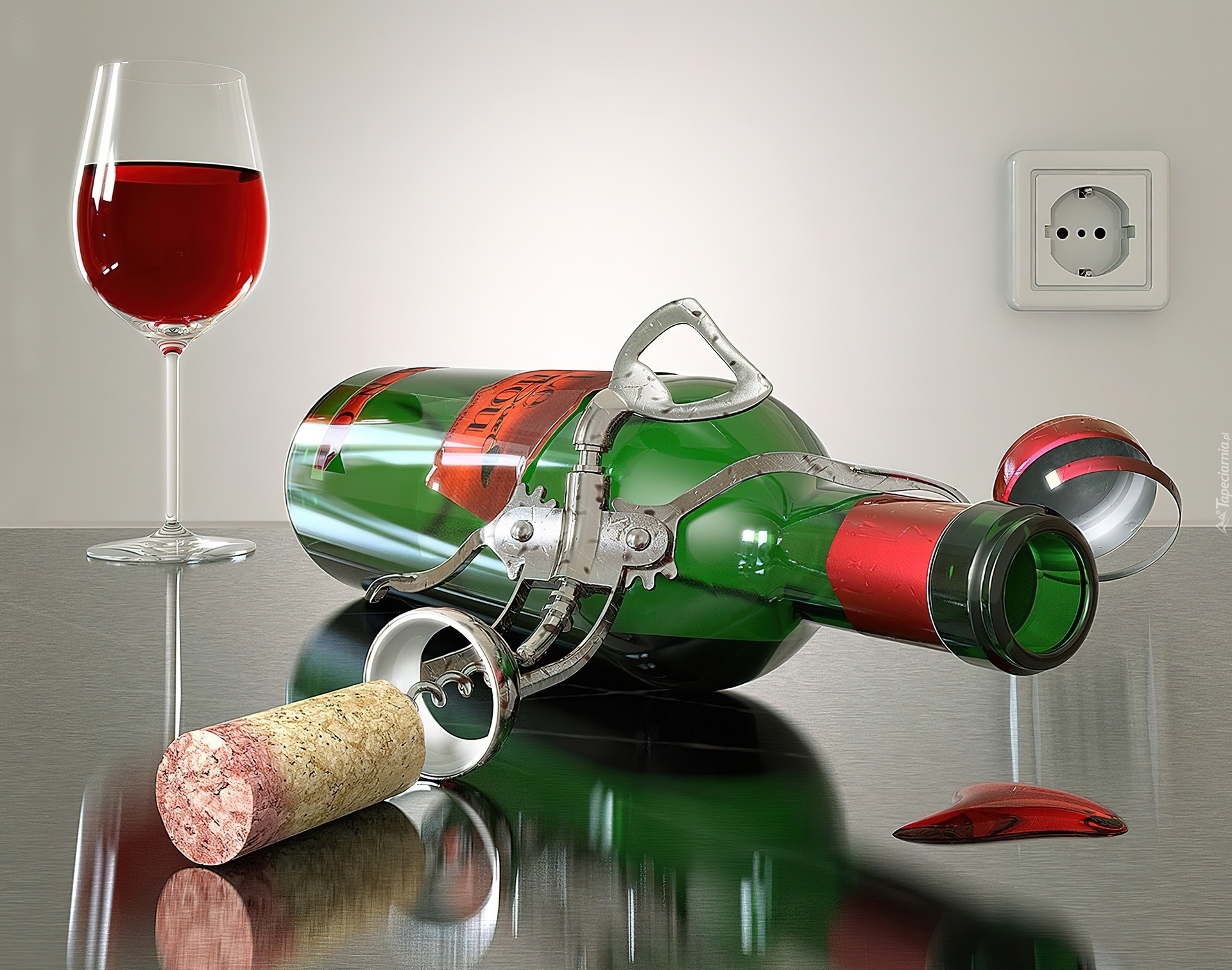 Edytor tapety: Butelka, Kieliszek, Korkociąg