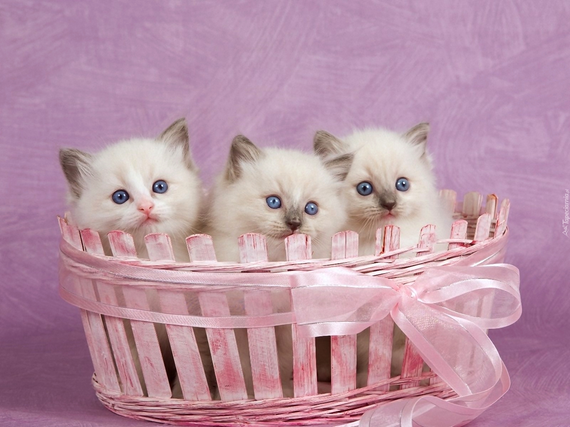 Edytor tapety: Różowy, Koszyk, Trzy, Kocięta