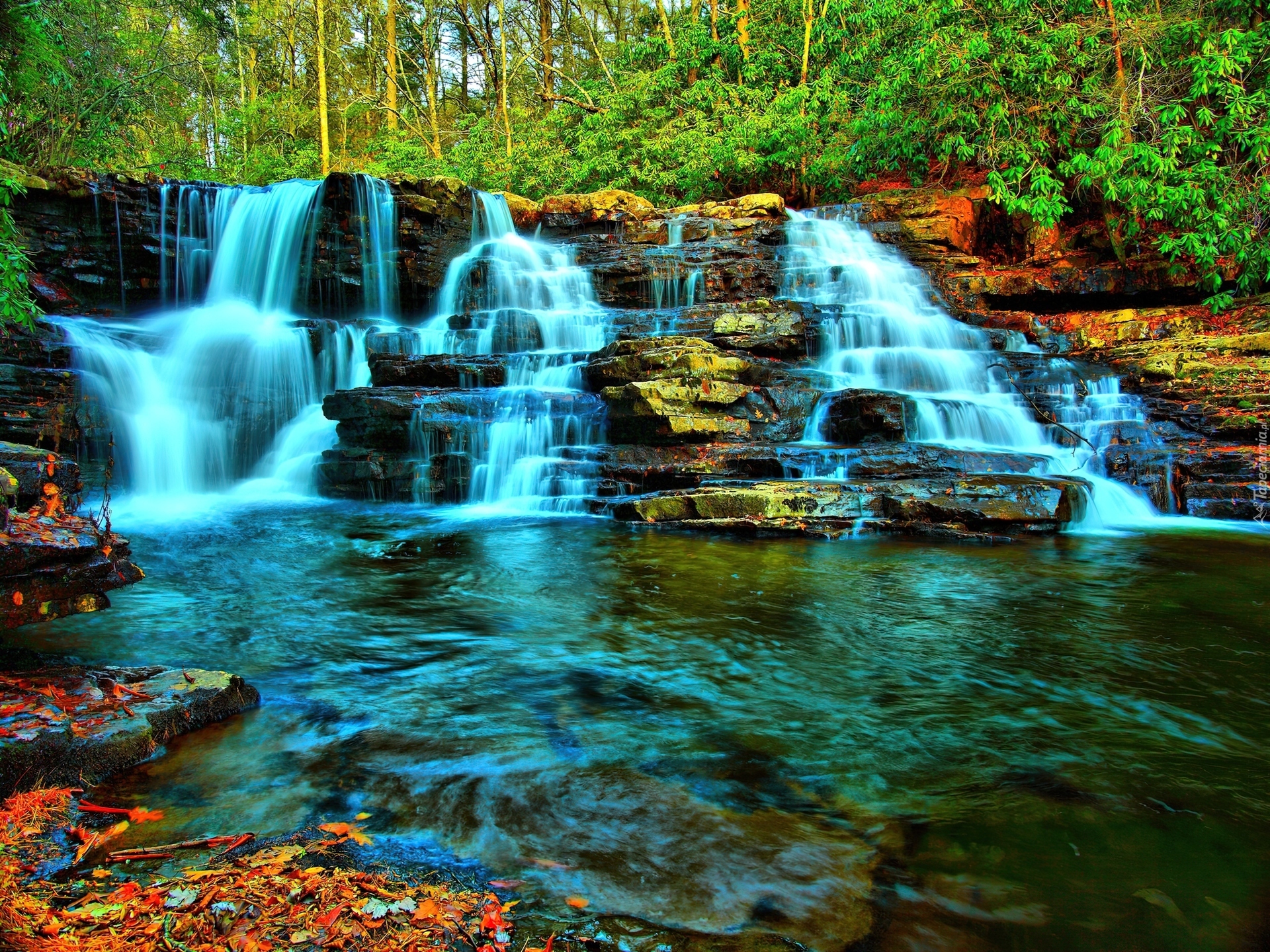 Edytor tapety: Drzewa, Skały, Wodospad, Jeziorko