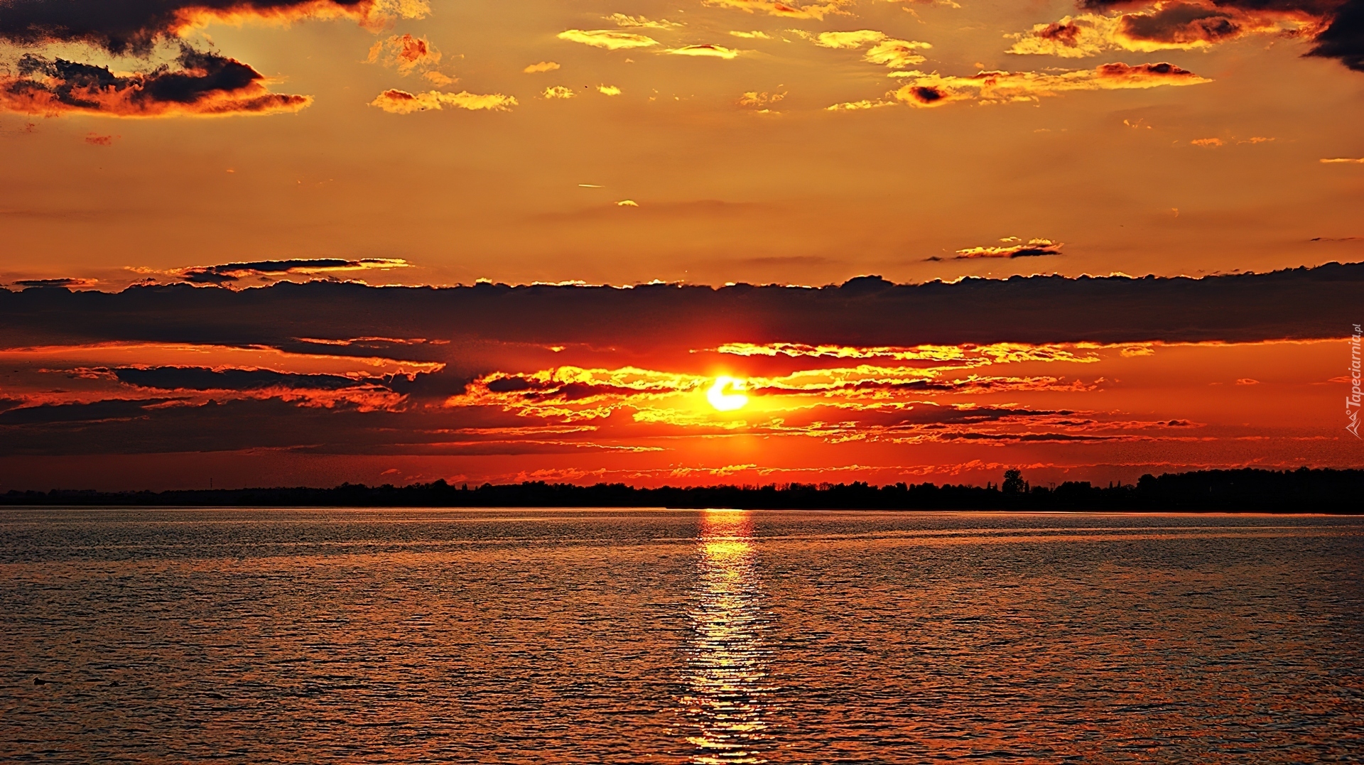 Edytor tapety: Zachód, Słońca, Jezioro, Niebo, Chmury