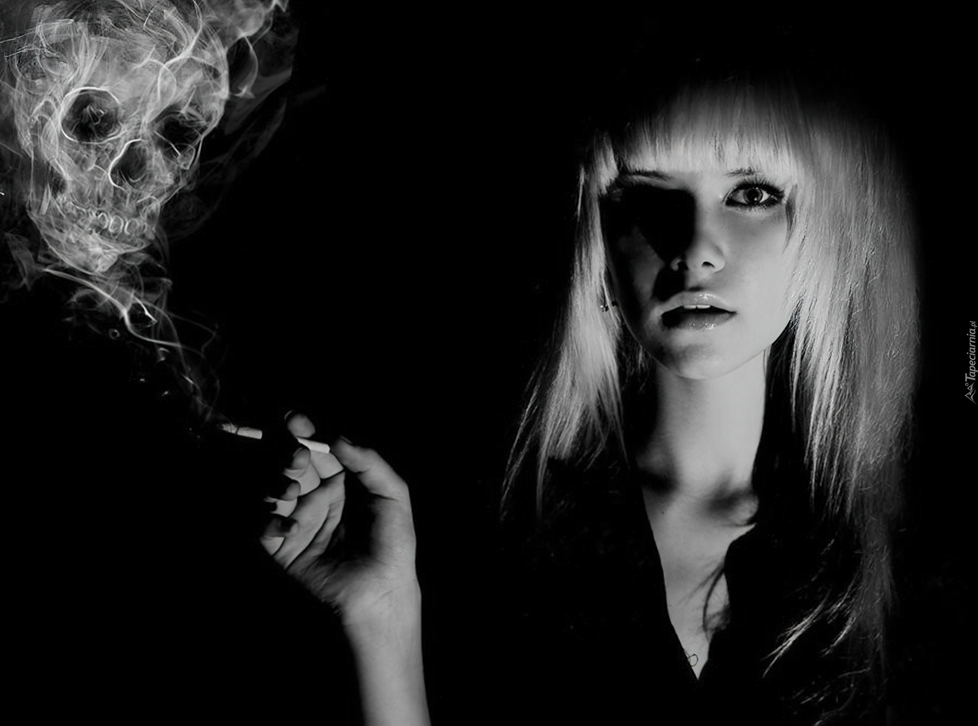 Edytor tapety: Kobieta, Papieros, Czaszka, Czarno-Białe