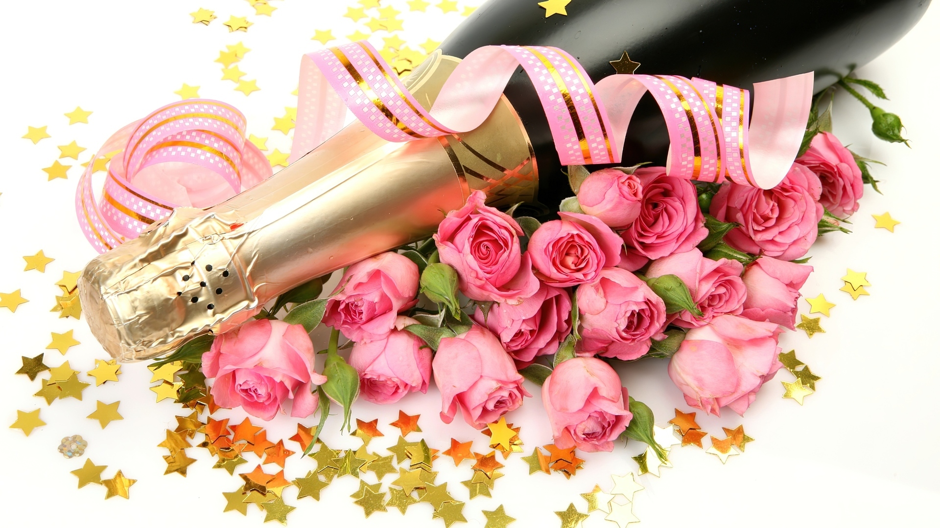 Edytor tapety: Różowe, Róże, Butelka, Szampana