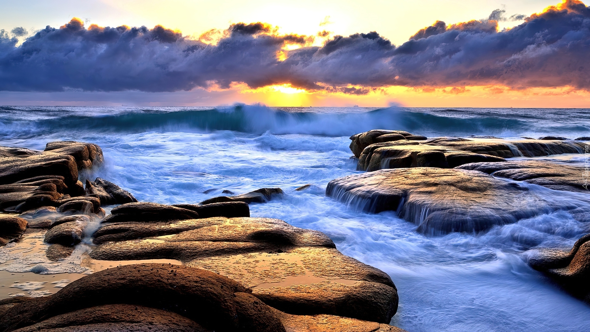 Edytor tapety: Niebo, Chmury, Fale, Kamienie