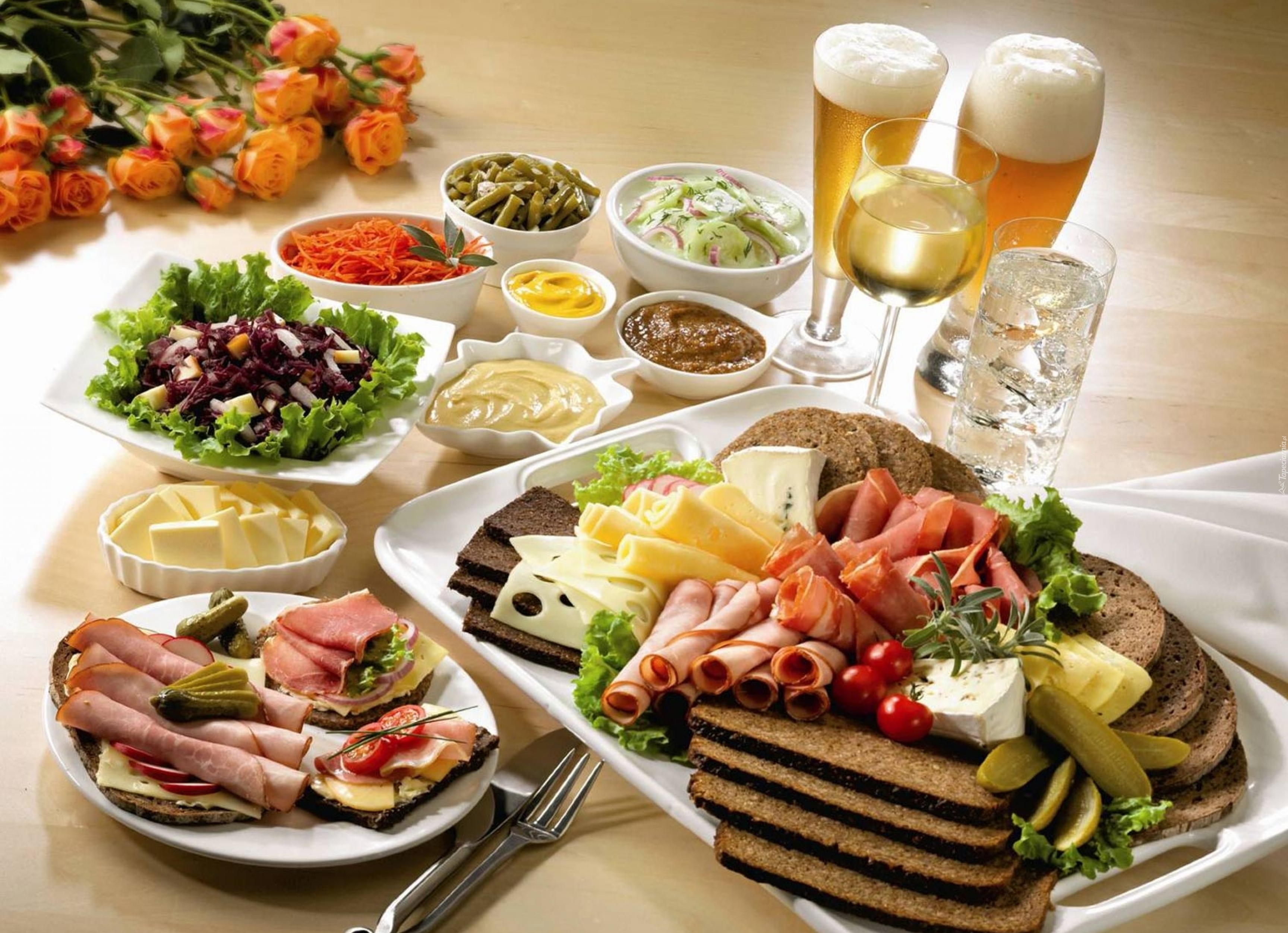 Edytor tapety: Talerze, Jedzenie, Piwo, Kolacja