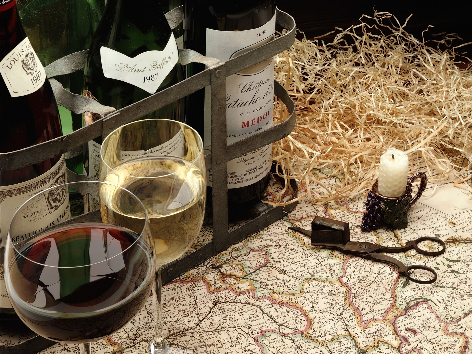 Edytor tapety: Kieliszki, Skrzynka, Wina, Medoc