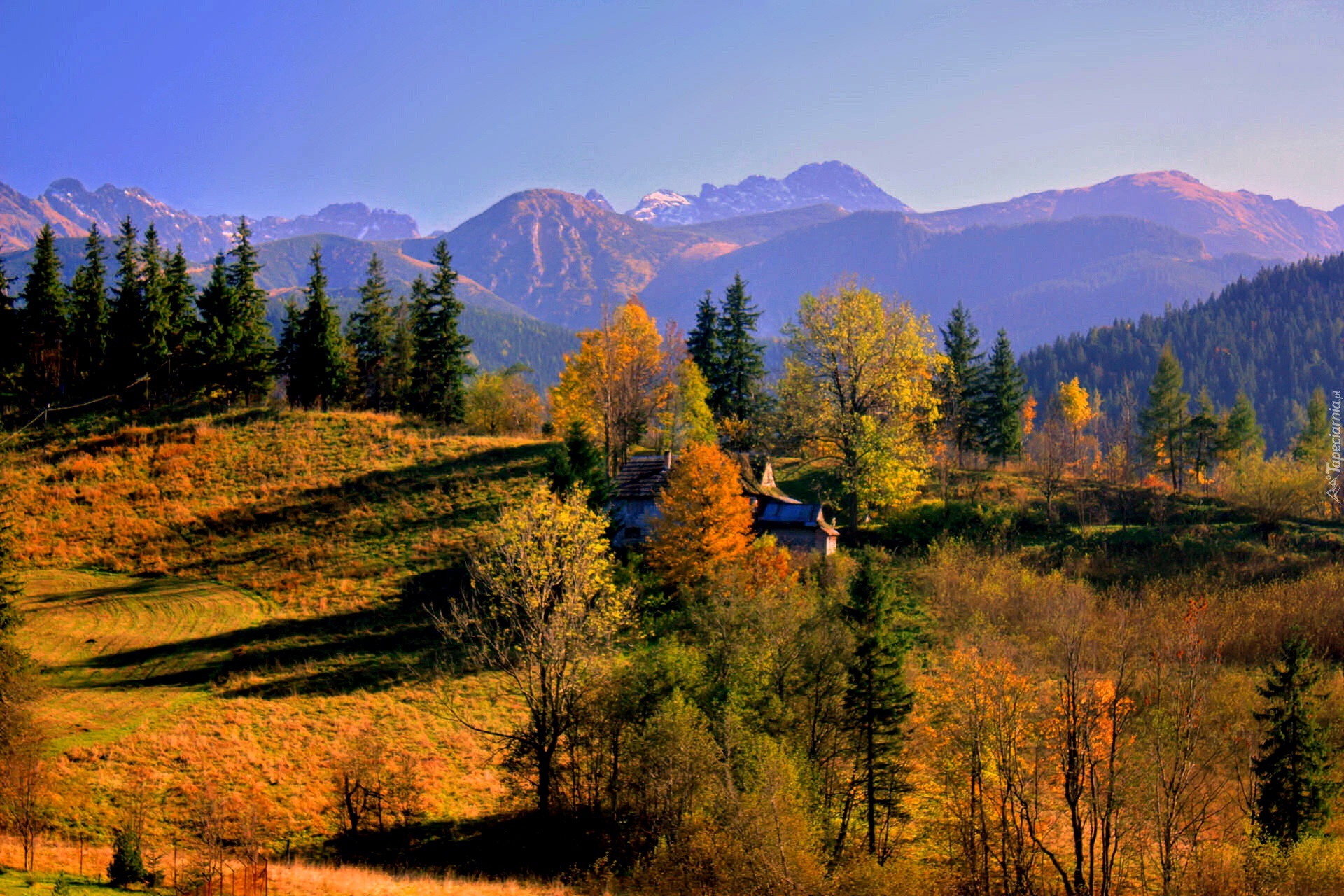 Edytor tapety: Jesień, Drzewa, Góry