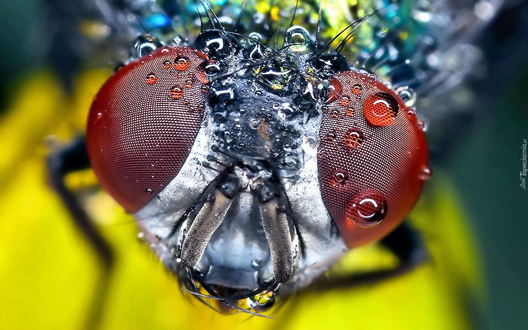 Edytor tapety: Oczy, Muchy, Krople, Wody