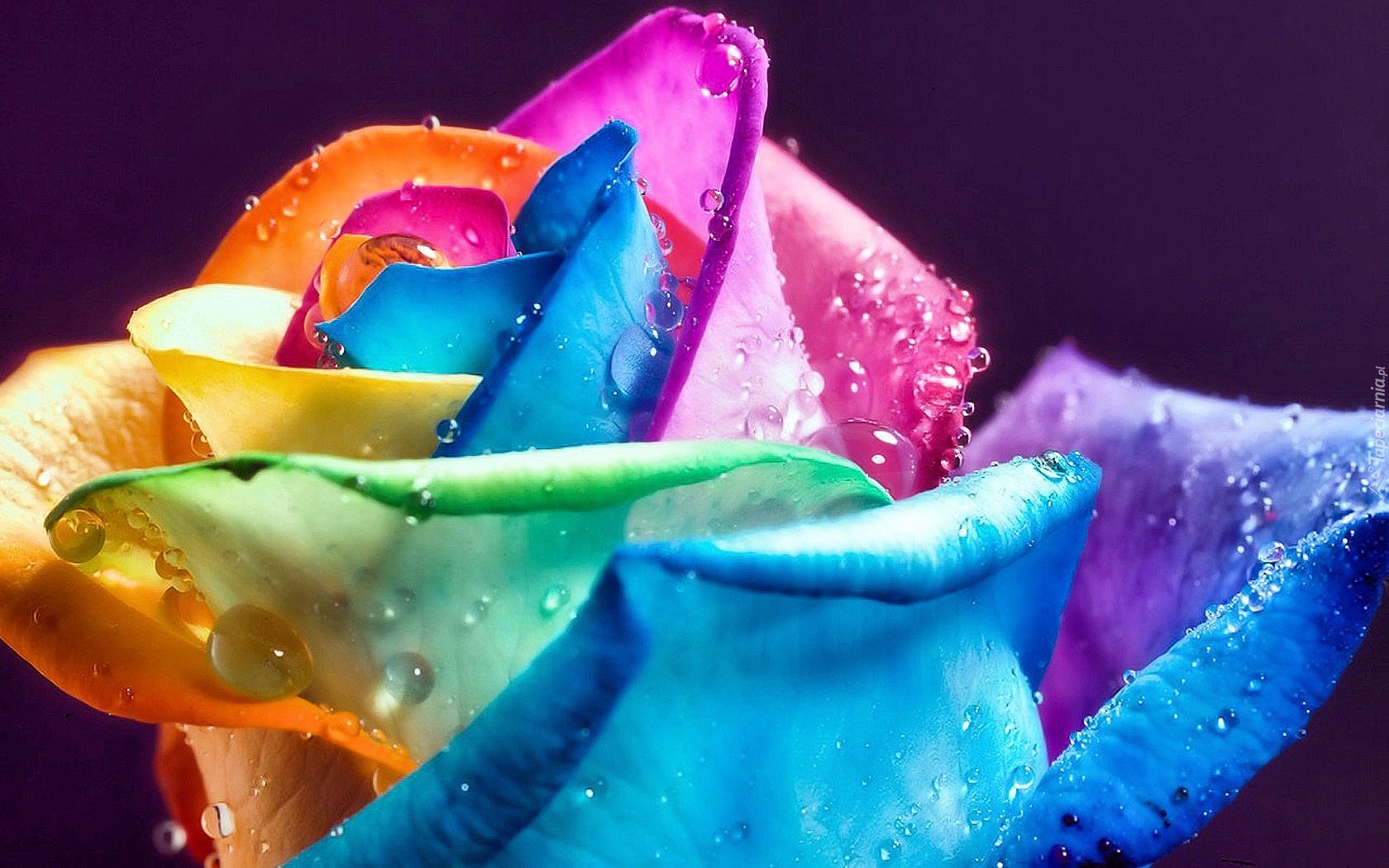 Edytor tapety: Kolorowa, Róża, Krople, Wody