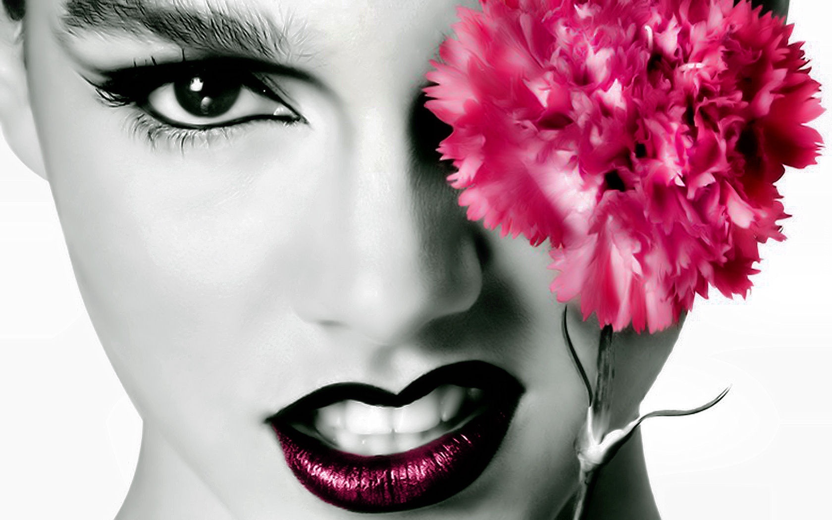 Edytor tapety: Kobieta, Kwiat, Wiśniowe, Usta