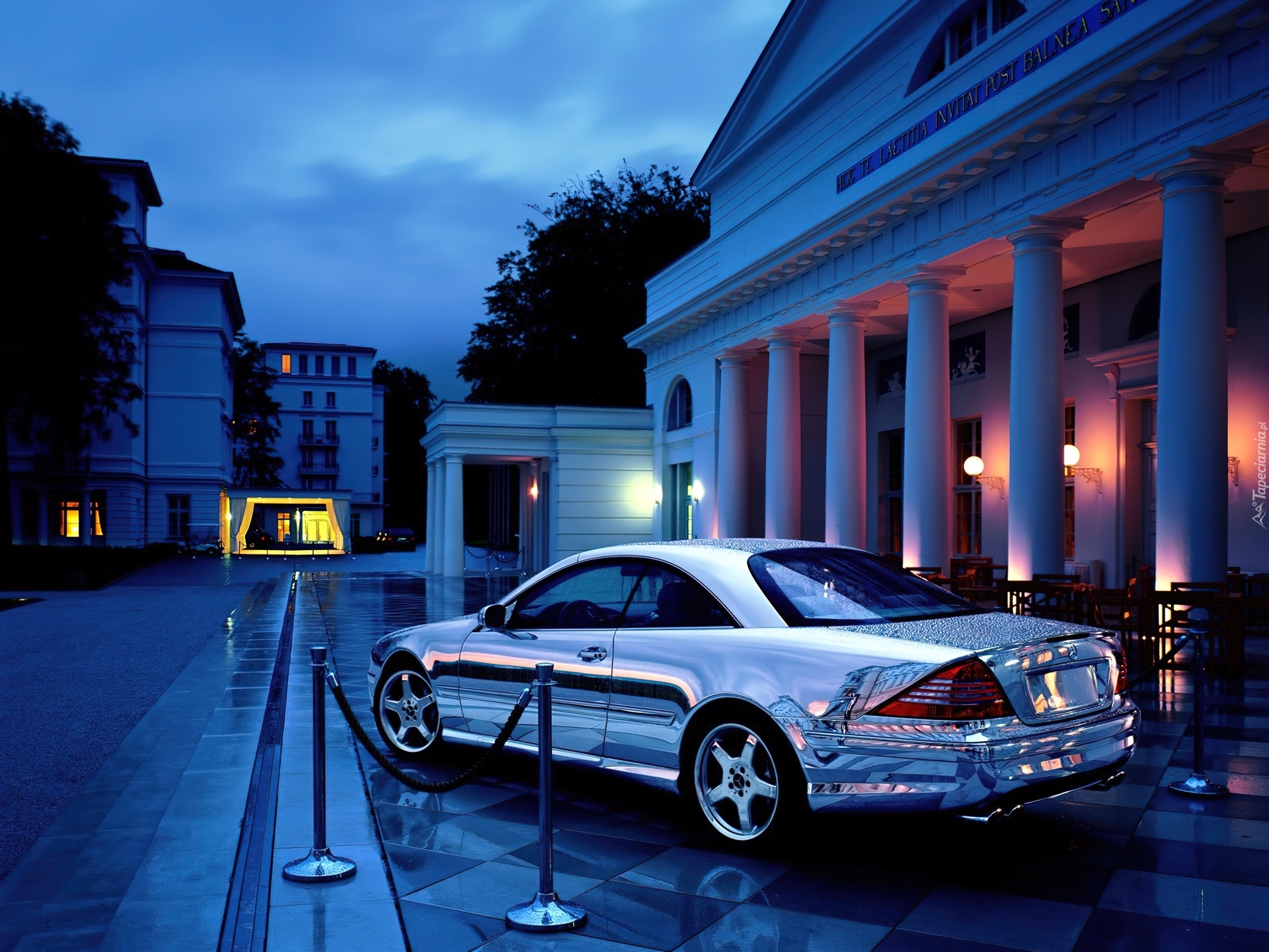 Edytor tapety: Mercedes SL, Chrom, Budynki, Ulica