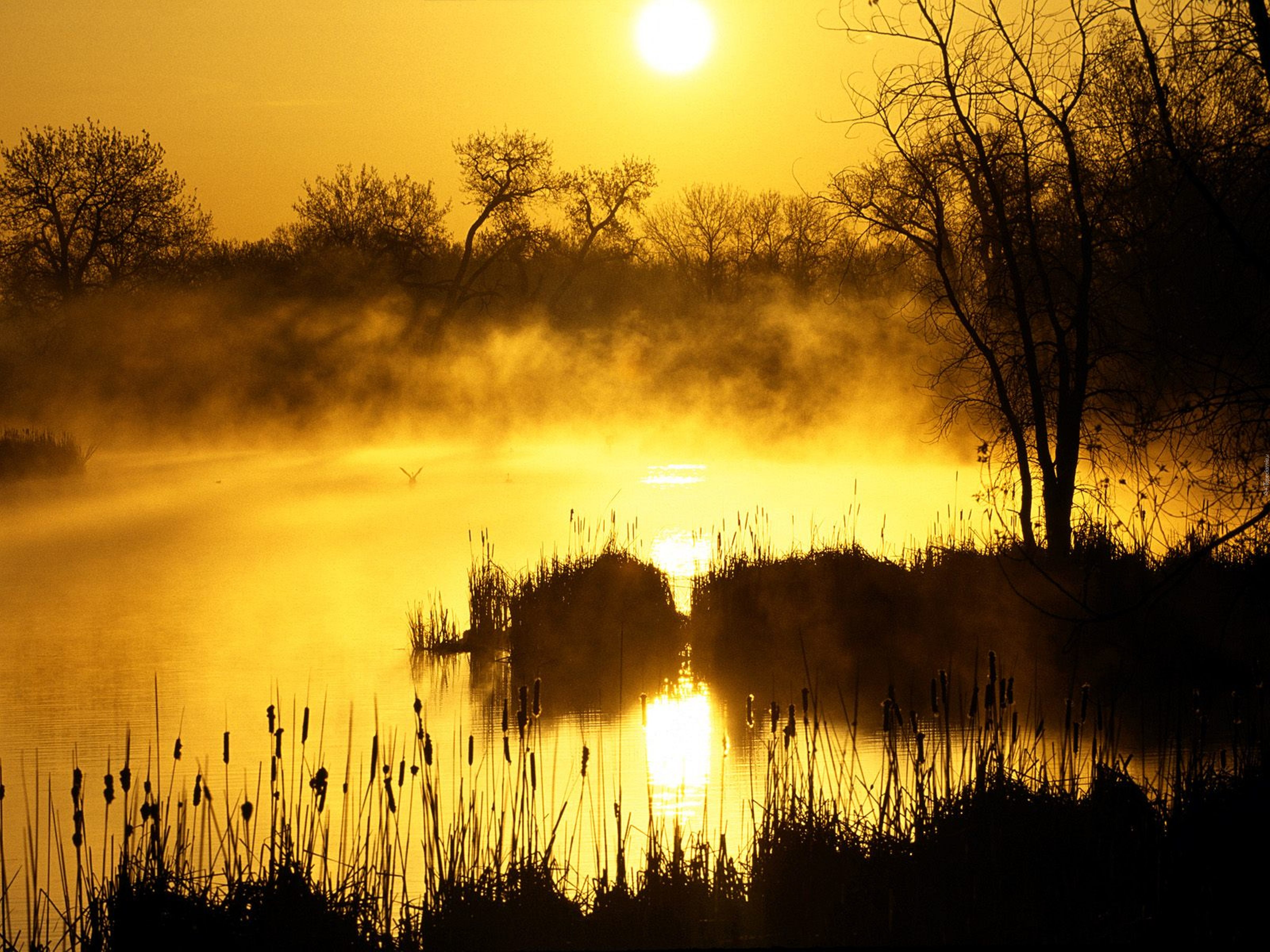 Edytor tapety: Jezioro, Zachód, Słońca, Drzewa