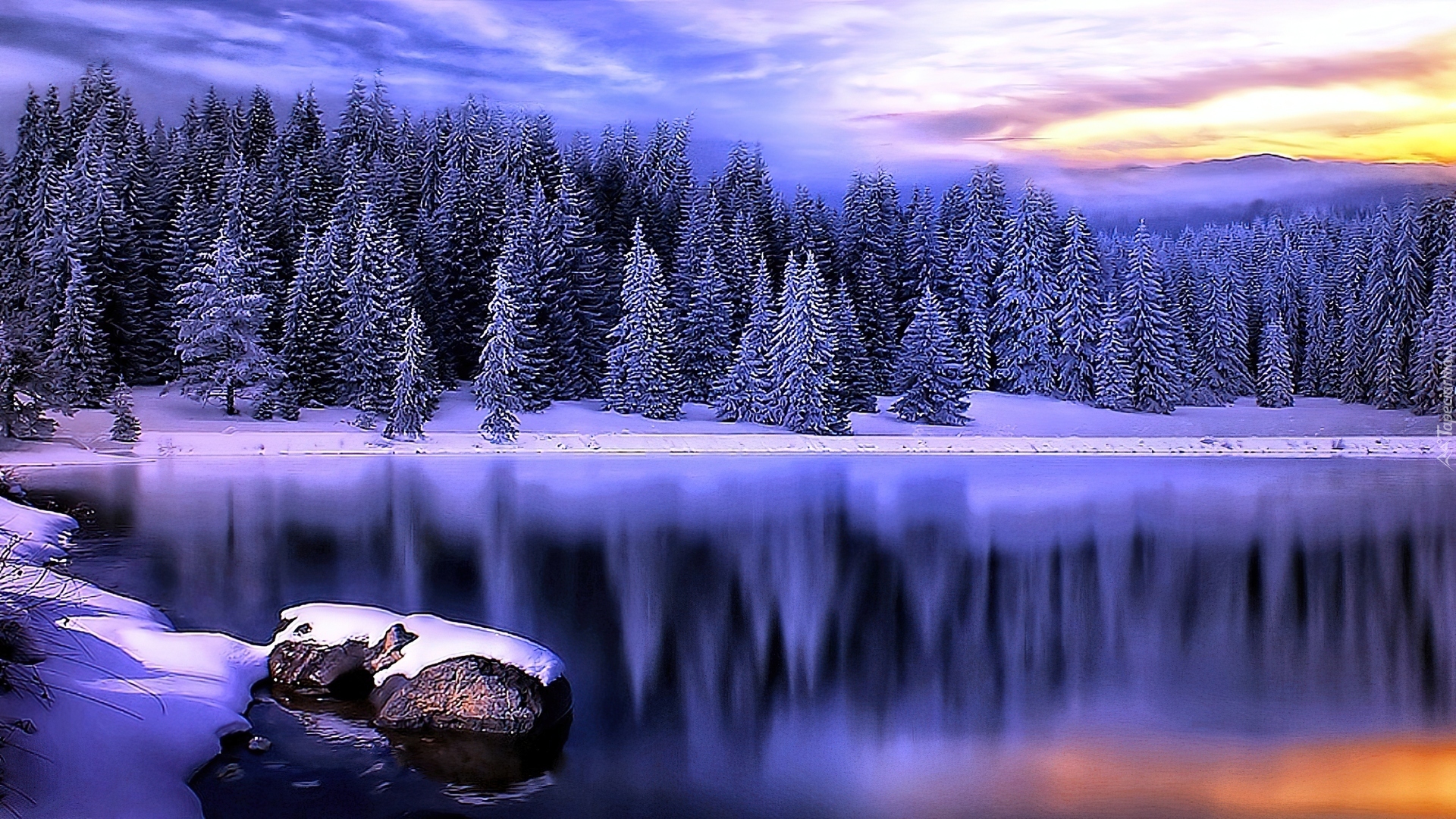 Edytor tapety: Choinki, Woda, Śnieg