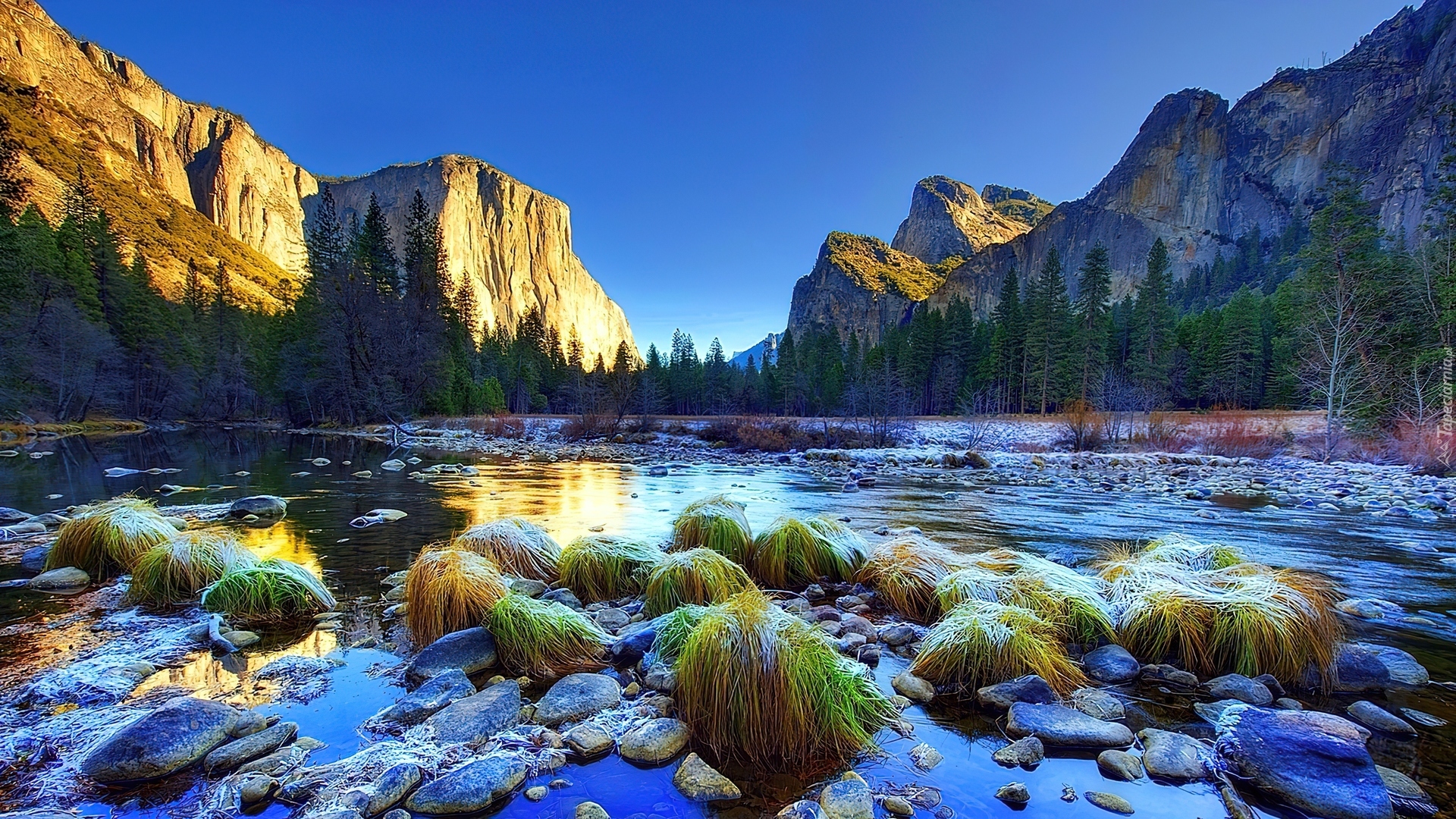 Edytor tapety: Góry, Woda, Choinki, Kamienie