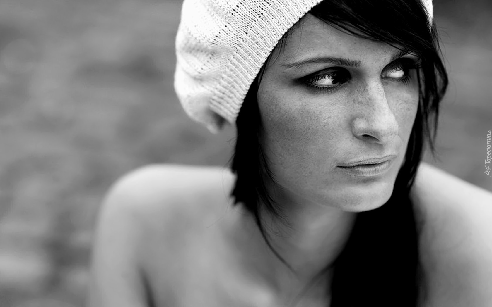 Edytor tapety: Kobieta, Beret, Ramiona, Czarno-Białe