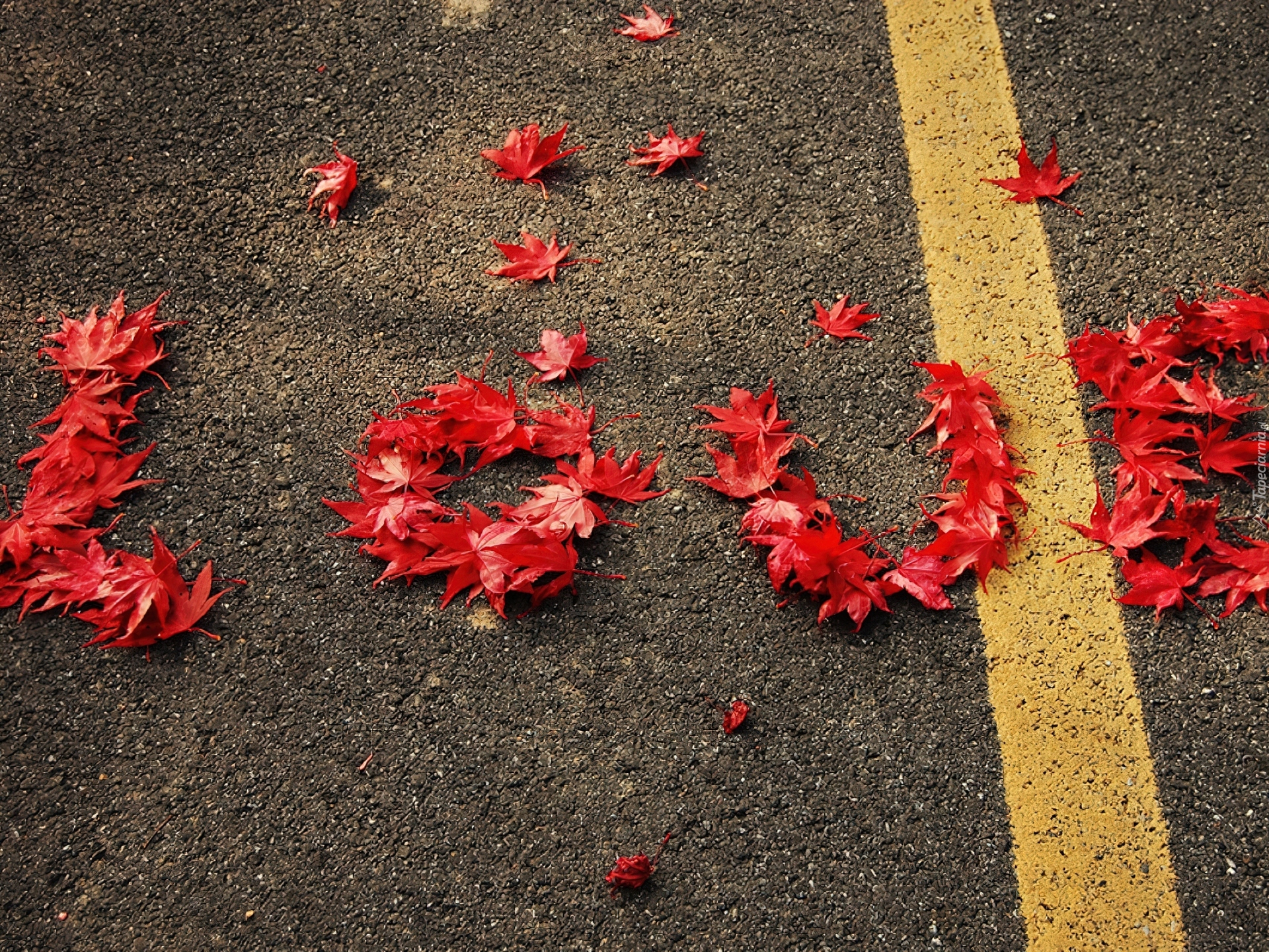Edytor tapety: Droga, Liście, Napis, Love