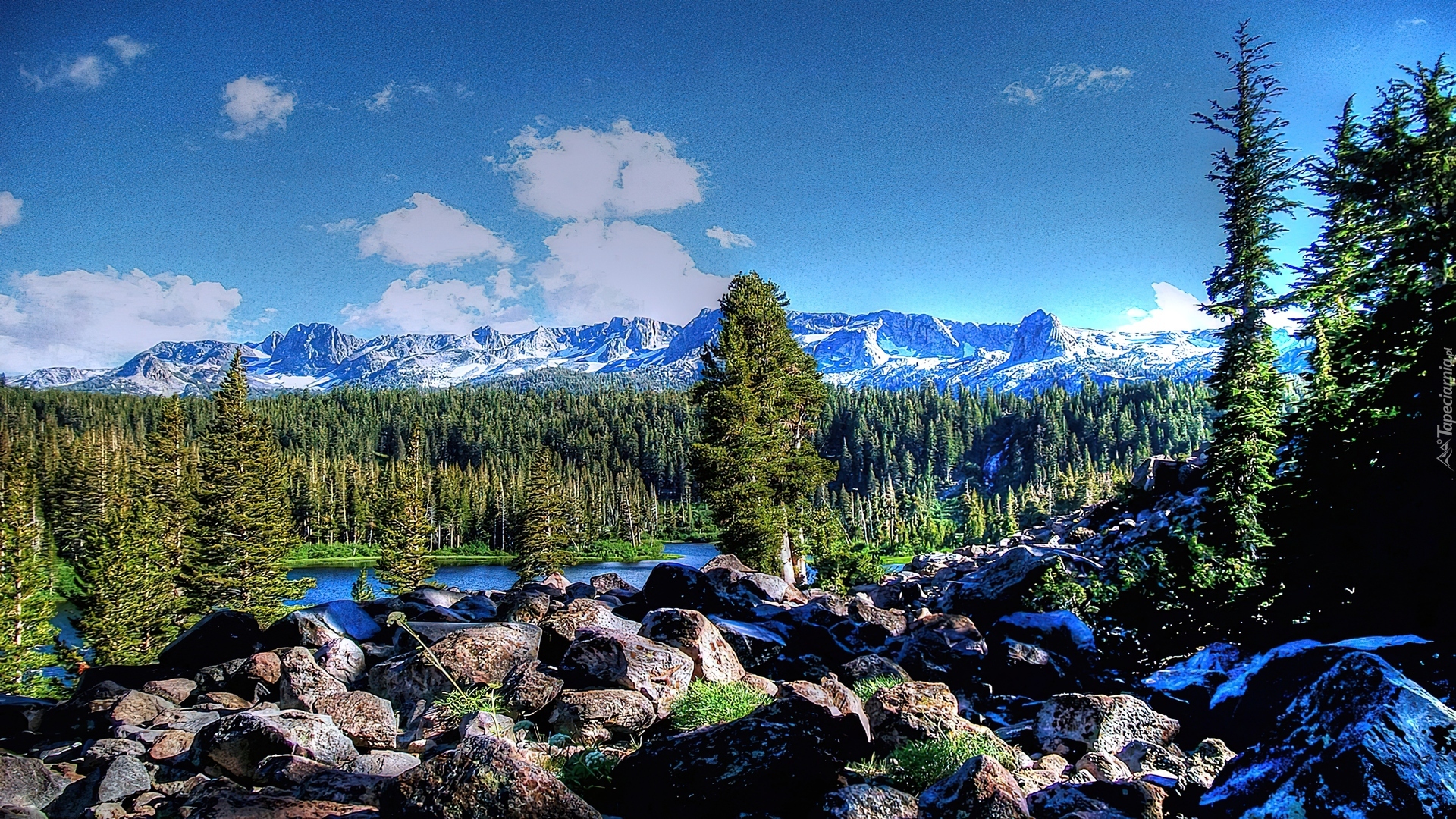 Edytor tapety: Góry, Choinki, Kamienie