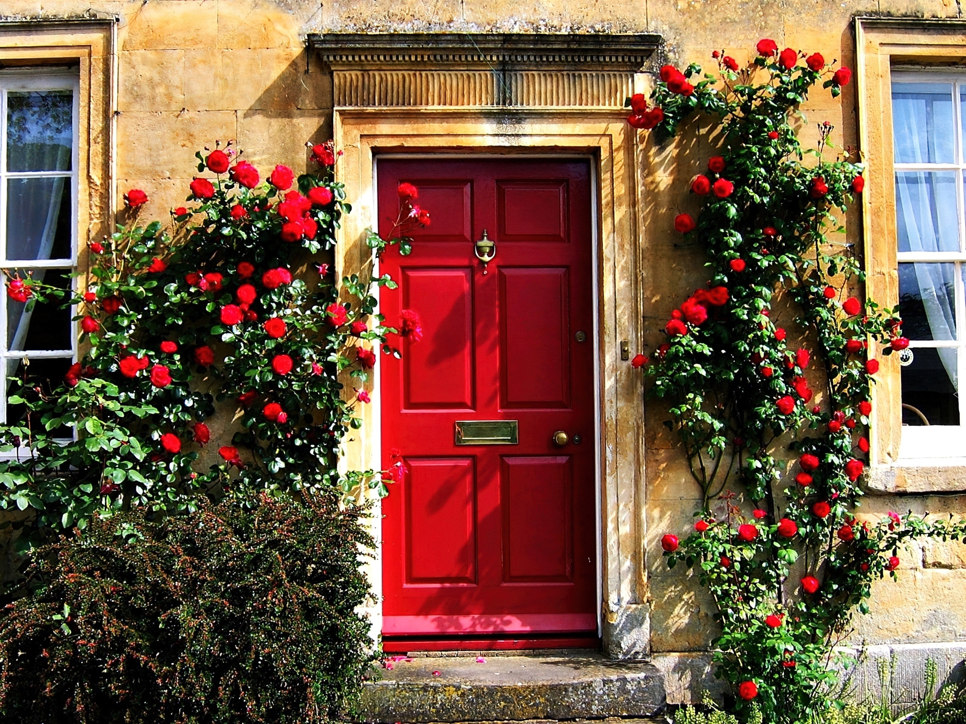 Edytor tapety: Dom, Czerwone, Drzwi, Róże