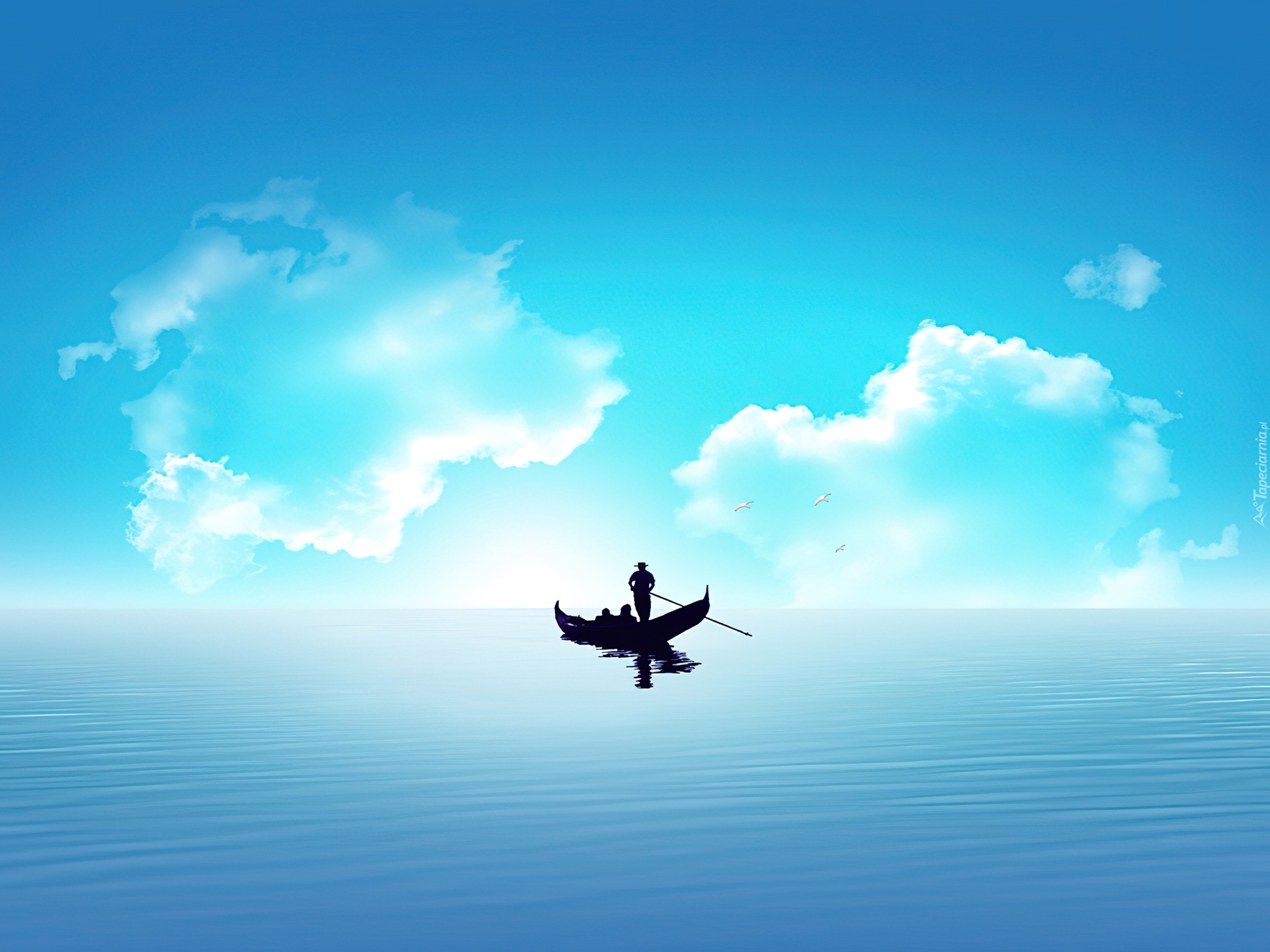Edytor tapety: Łódka, Chmury, Jezioro
