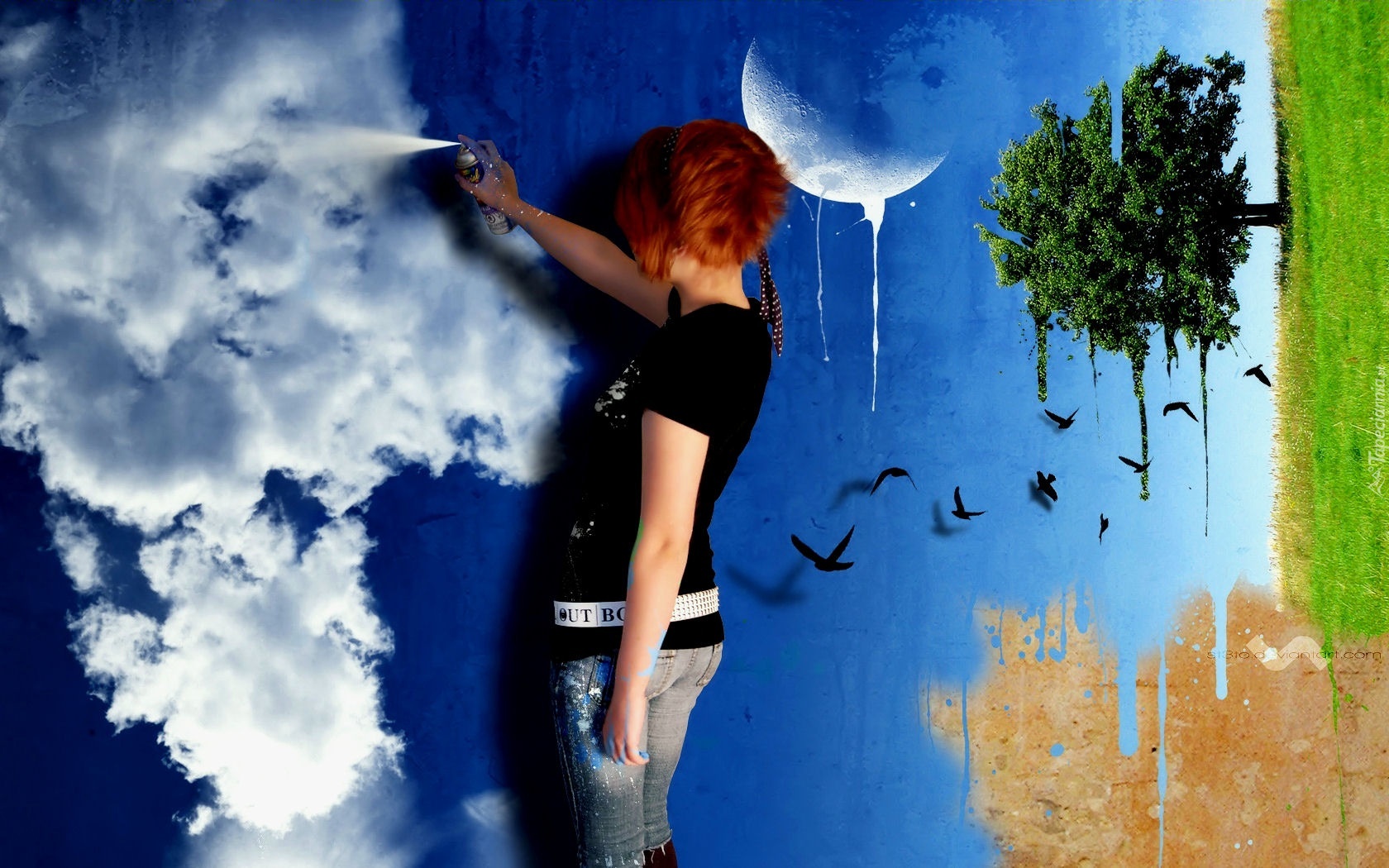 Edytor tapety: Kobieta, Ściana, Graffiti