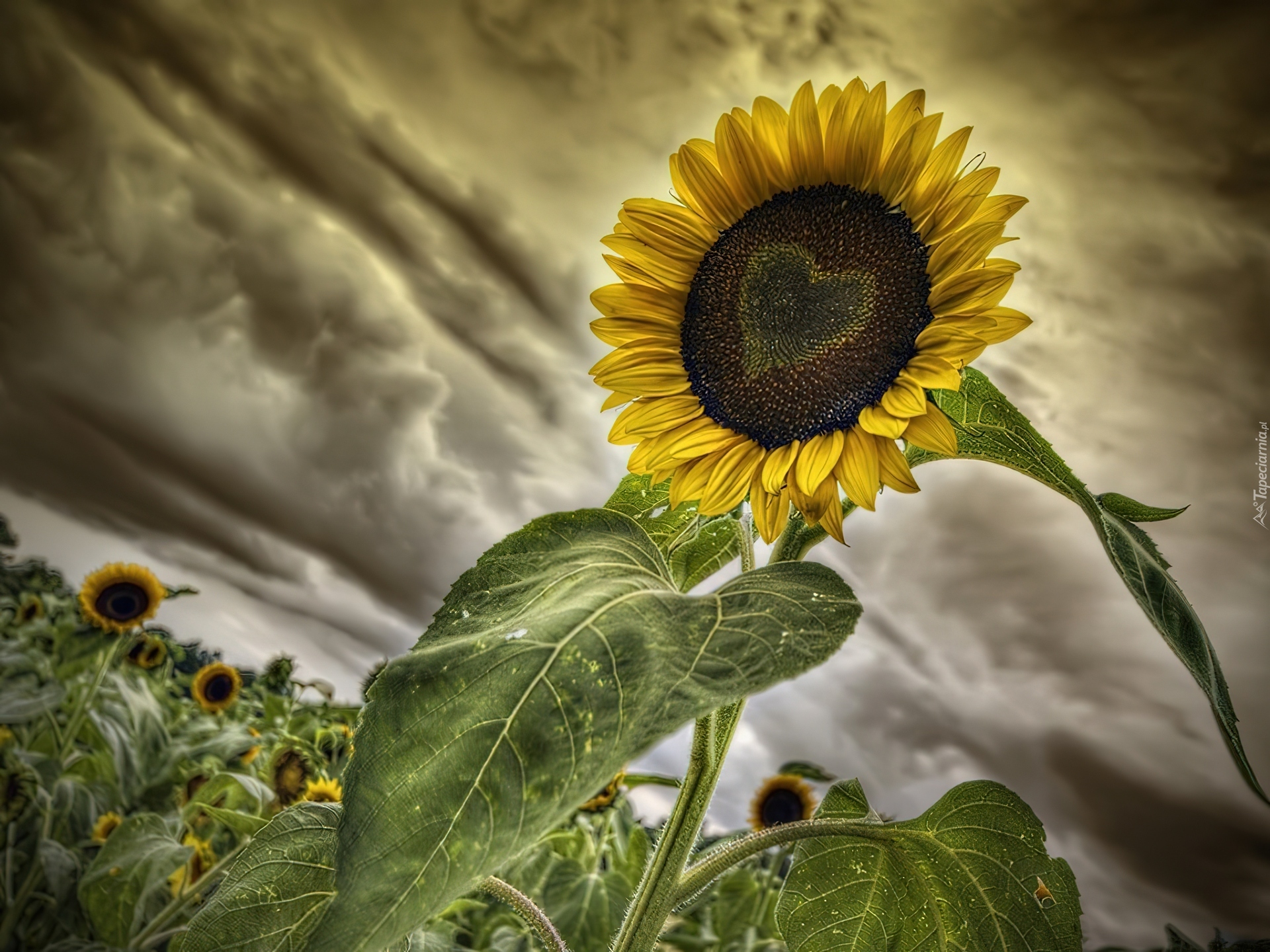 Edytor tapety: Słoneczniki, Chmury, Serce
