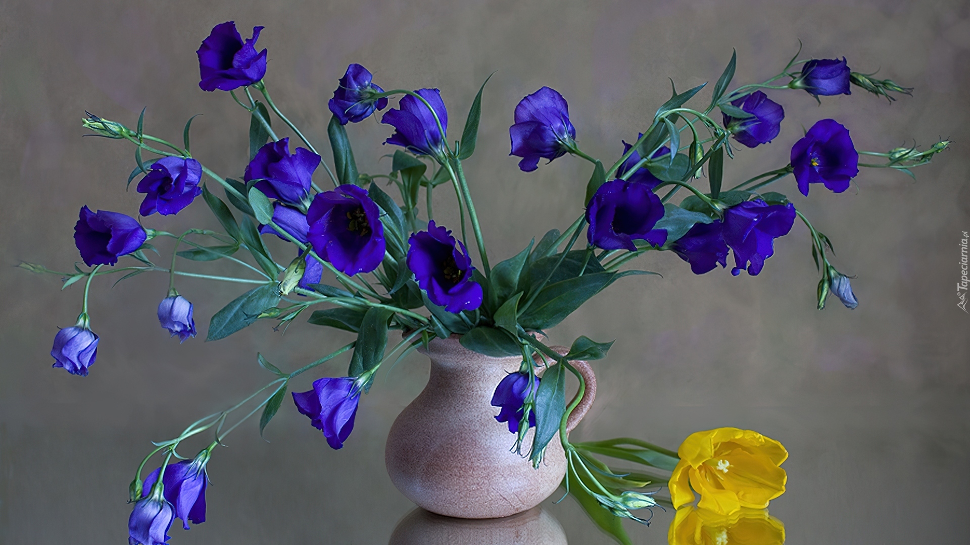 Edytor tapety: Niebieskie, Kwiaty, Żółty, Tulipan