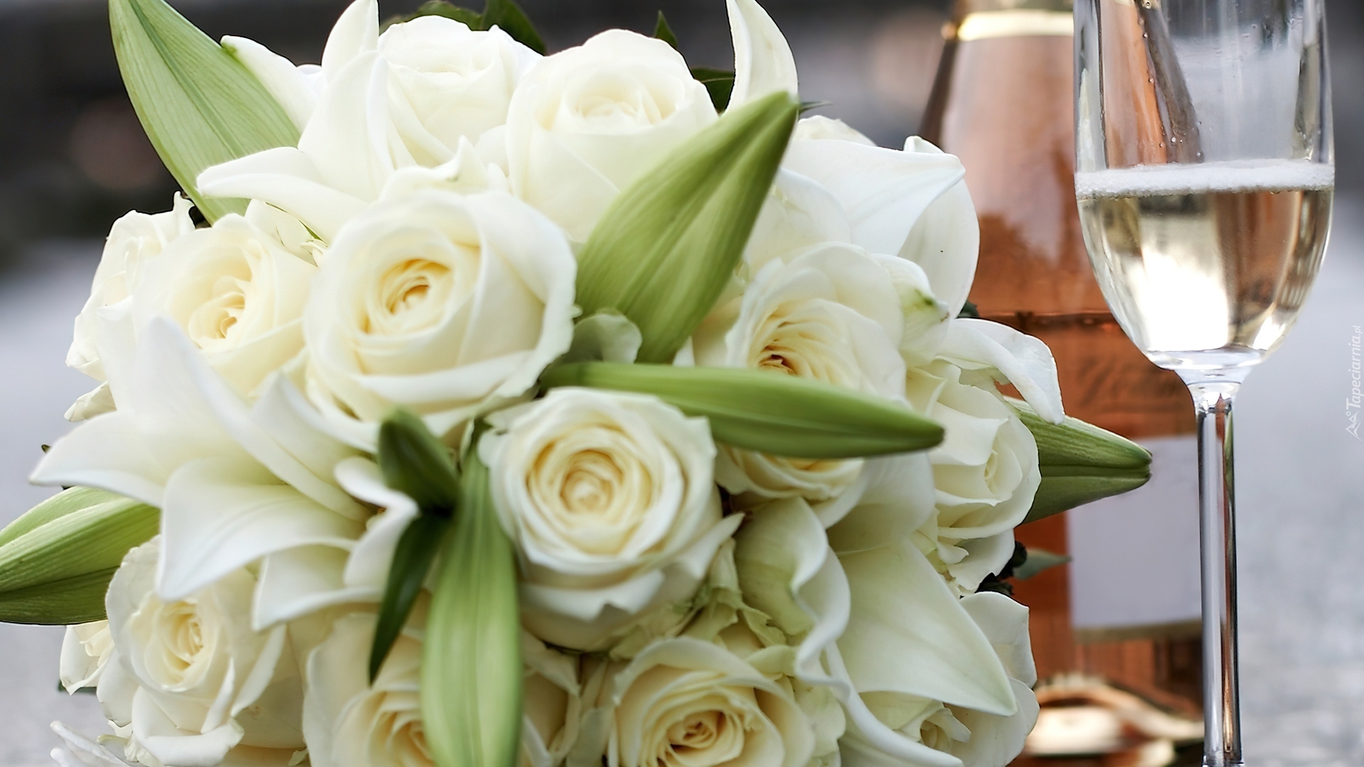 Edytor tapety: Bukiet, Białych, Róż, Szampan
