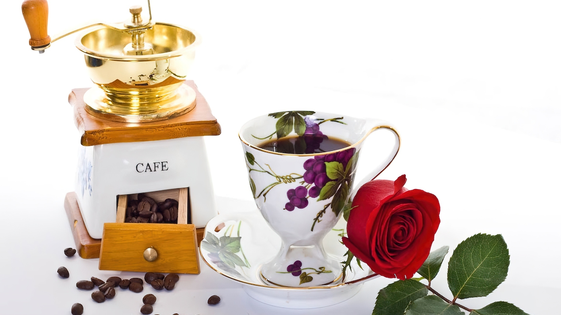 Edytor tapety: Młynek, Filiżanka, Kawa, Róża