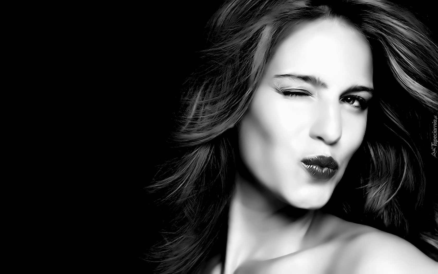 Edytor tapety: Kobieta, Przymrużone, Oko, Czarno-białe
