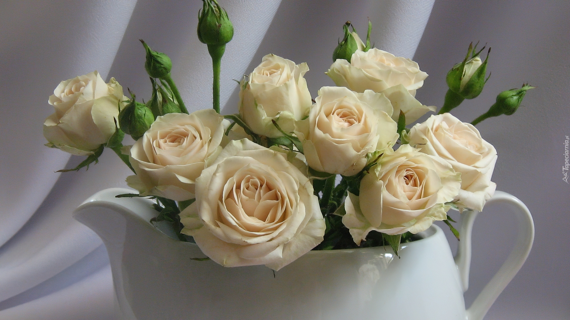 Edytor tapety: Biały, Dzbanek, Białe, Róże