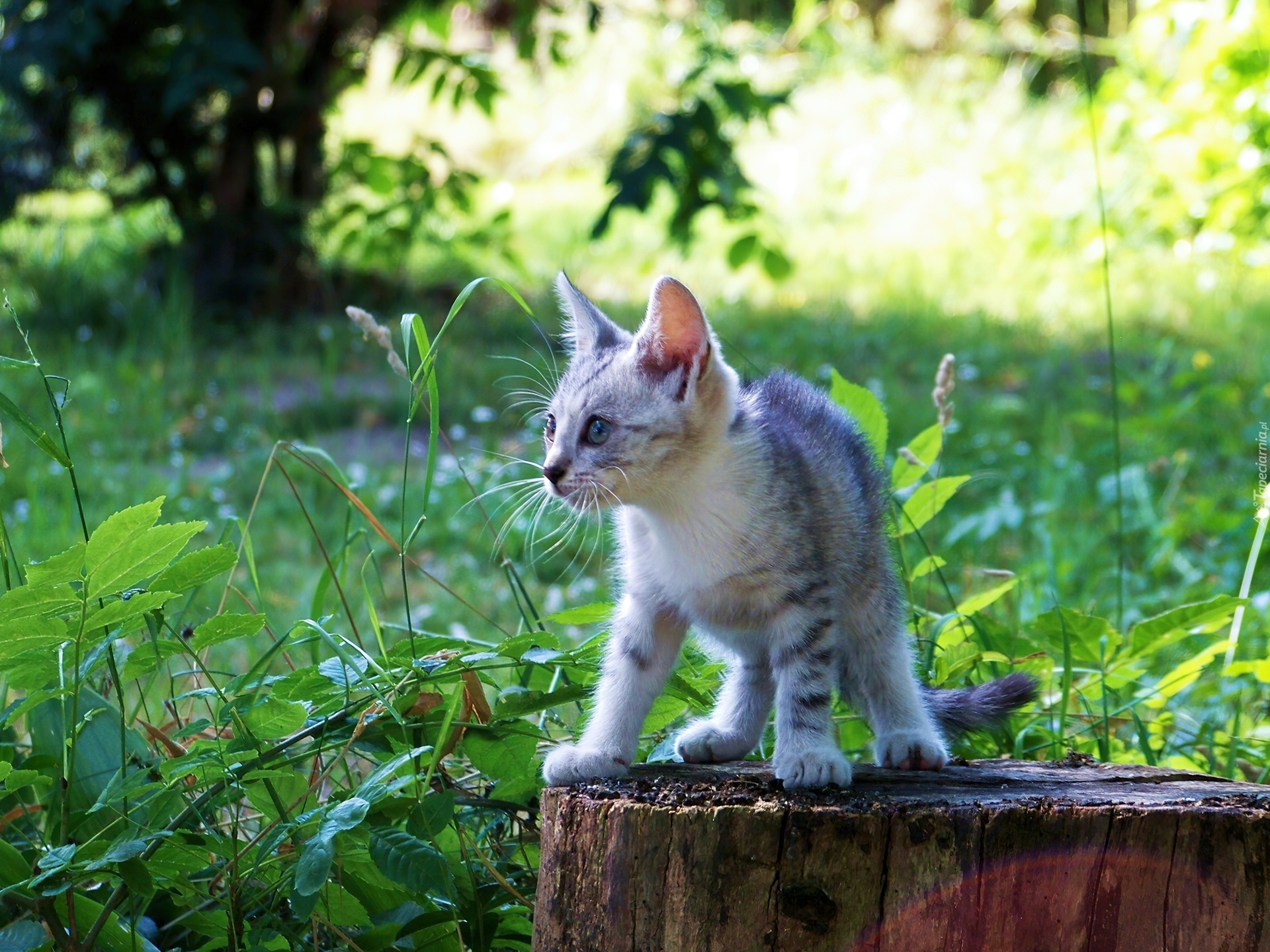 Edytor tapety: Kotek, Pień, Zieleń