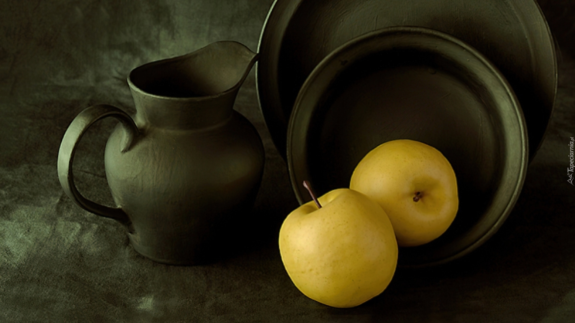 Edytor tapety: Metalowe, Naczynia, Żółte, Jabłka