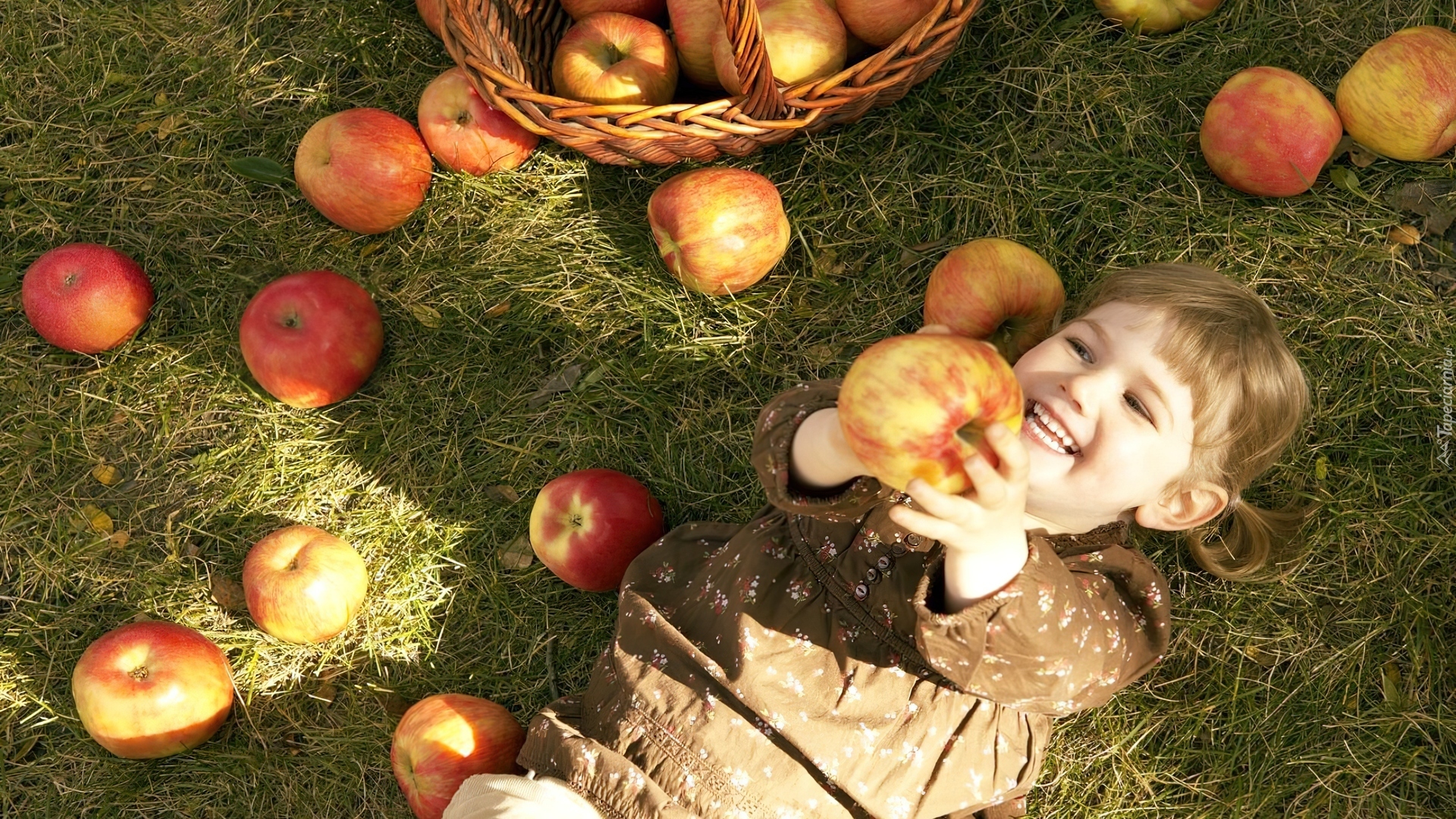 Edytor tapety: Dziewczynka, Kolorowe, Jabłka