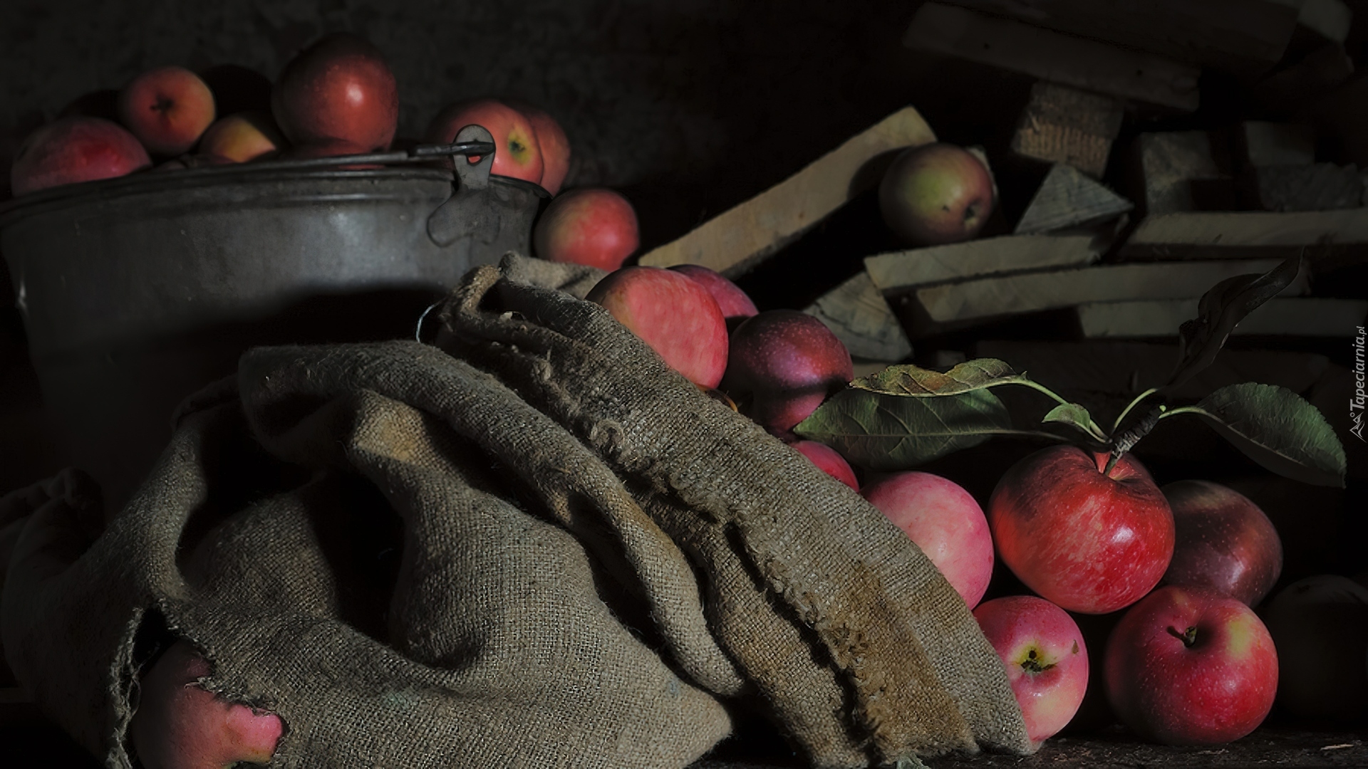 Edytor tapety: Jabłka, Worek, Wiadro