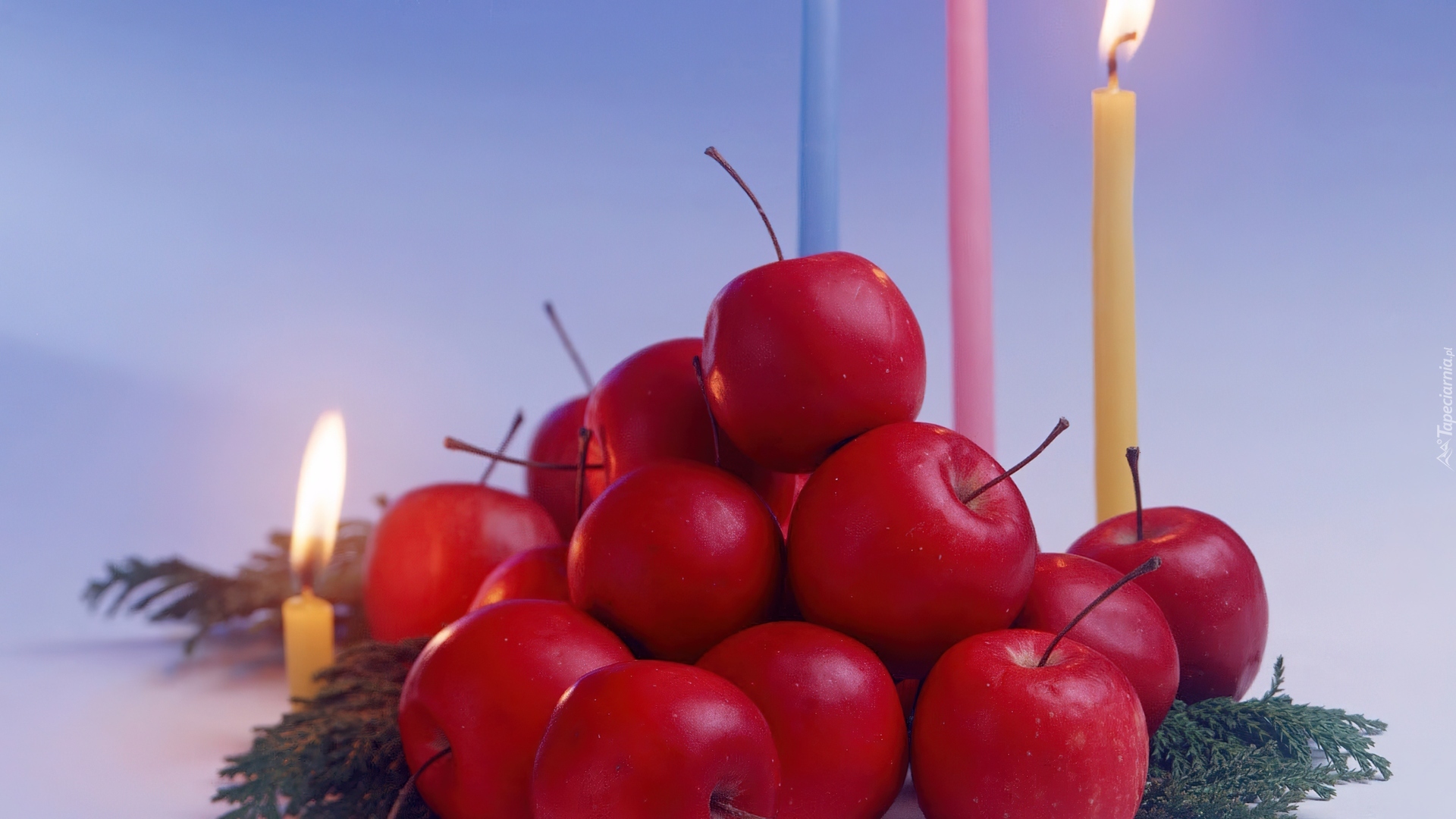Edytor tapety: Rajskie, Jabłka, Świece