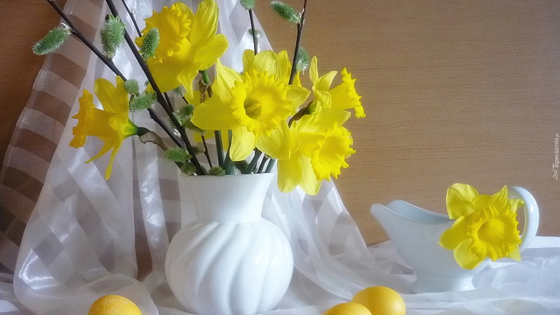 Edytor tapety: Biały, Wazon, Żółte, Żonkile