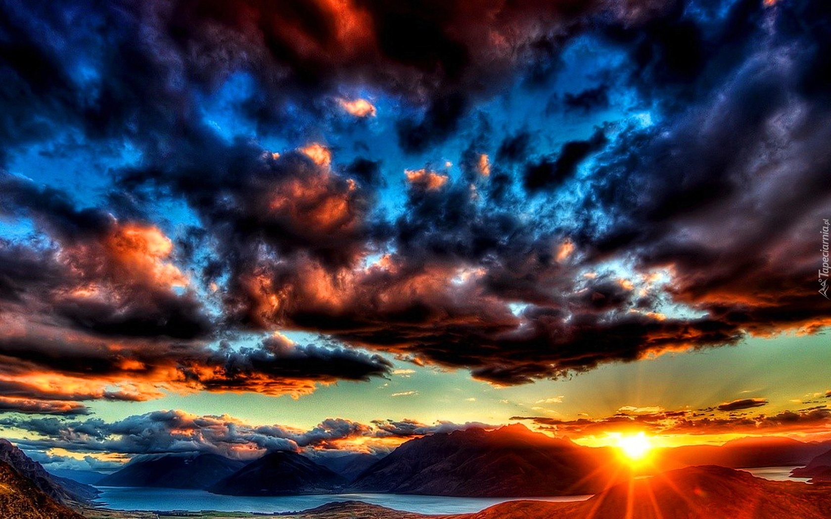 Edytor tapety: Zachód, Słońca, Chmury, Góry